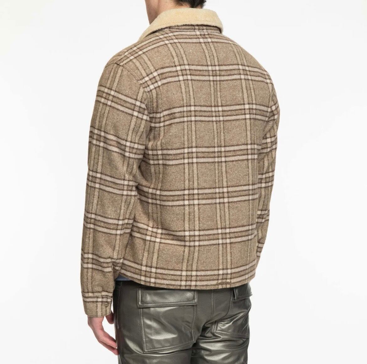 Chrome HeartsのCHシアリングジャケットは、プレミアムな素材使いとクラシックなプレイド柄が魅力の一着。フロントには.925スターリングシルバー製のボタンを3つ配し、細部までこだわったアメリカ製の高品質な仕上がり。スタイルと暖かさを両立する、存在感あるアイテムです。