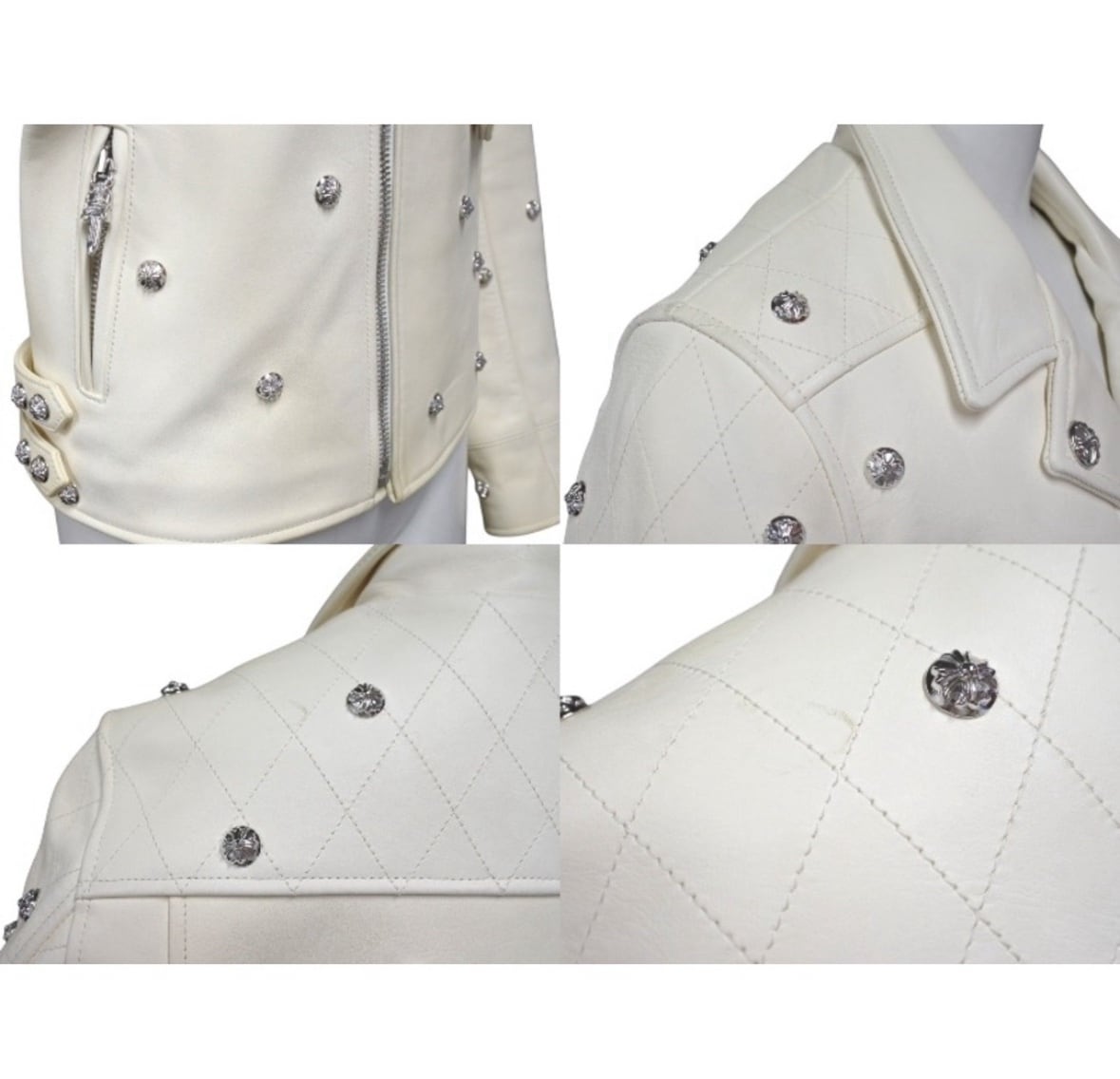 CHROME HEARTS クロムハーツ クリティン ライダースジャケット クロスボール ホースレザー ホワイト