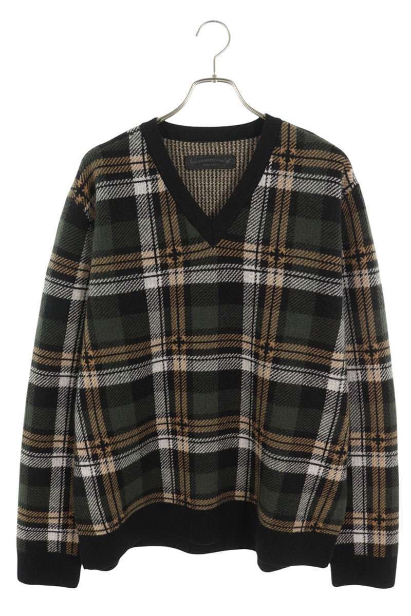 CHROME HEARTS クロムハーツ ニット チェック柄 カシミ ヤブレンド Vネック ニット