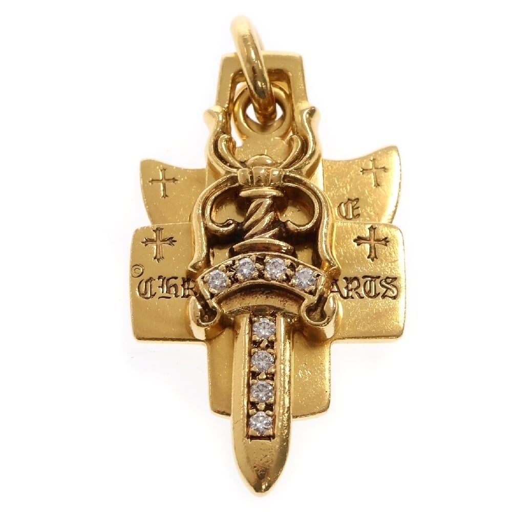 CHROME HEARTS クロムハーツ 22K 3TRINKETS P D スリートリンケッツ PAVEダイヤ ゴールドネックレストップ ゴールド