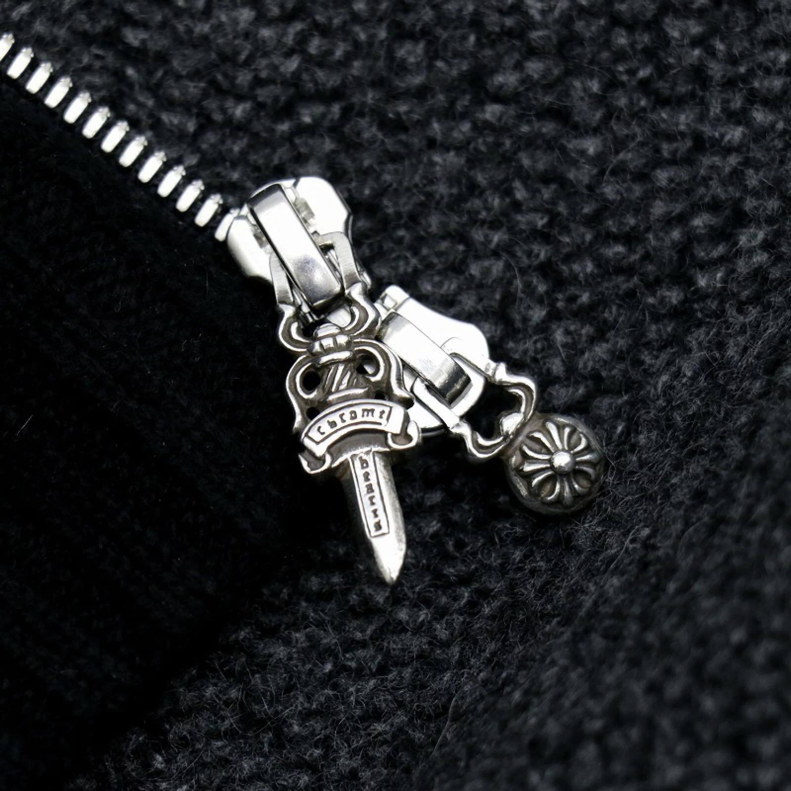 CHROME HEARTS クロムハーツ カシミヤ ダブルジップニット カーディガン ニットブルゾン セメタリークロスパッチ
