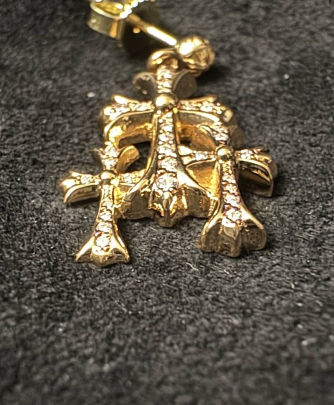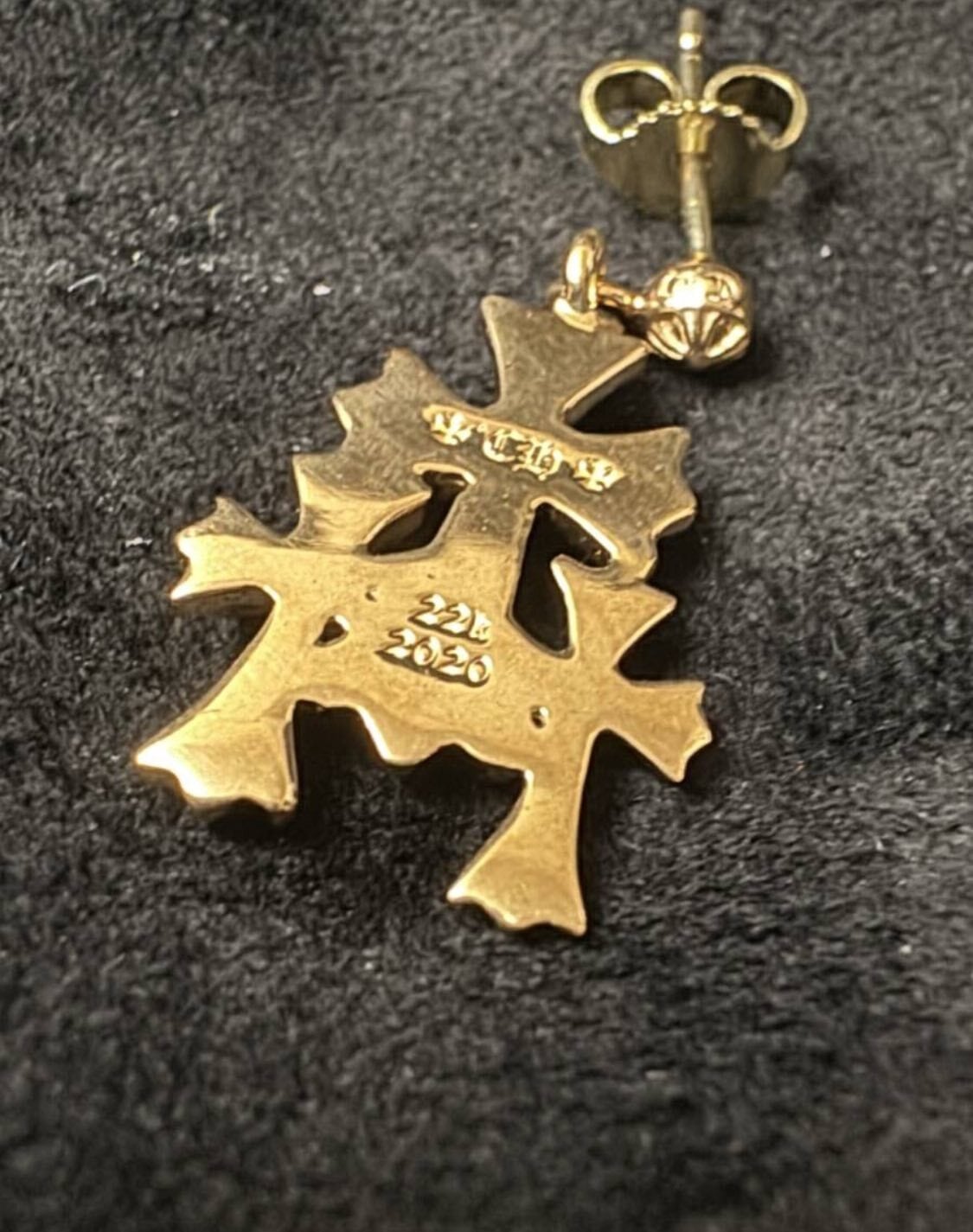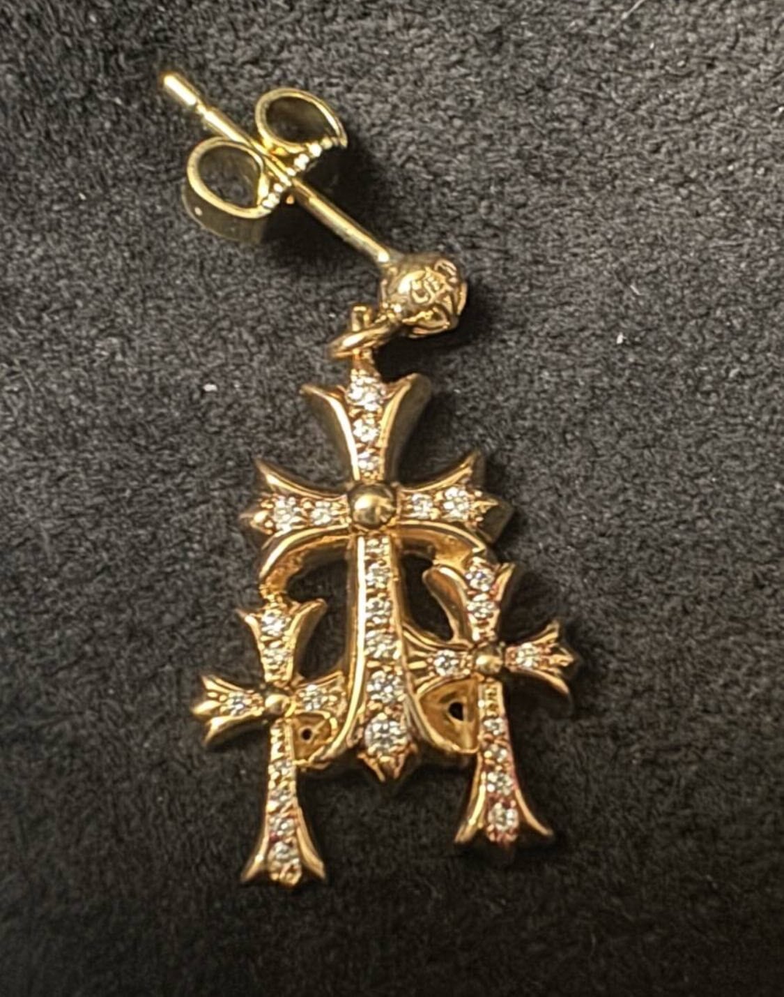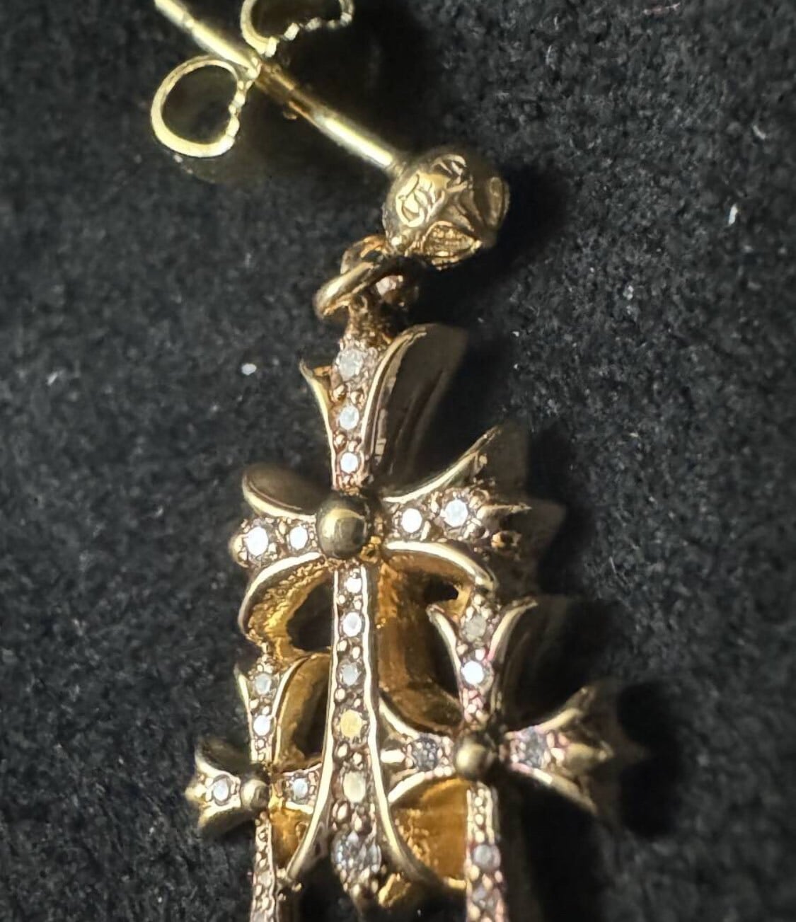 CHROME HEARTS クロムハーツ 3CH クロス ドロップ ピアス 22K ダイヤモンド ゴールド