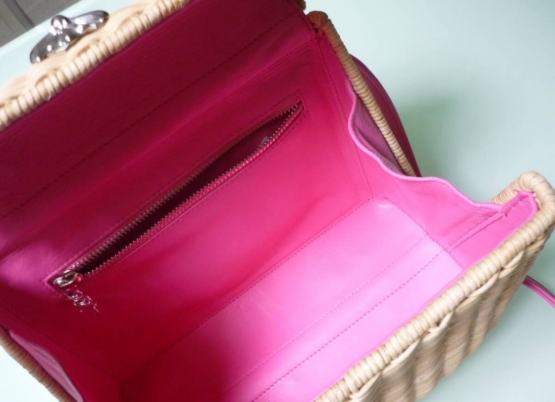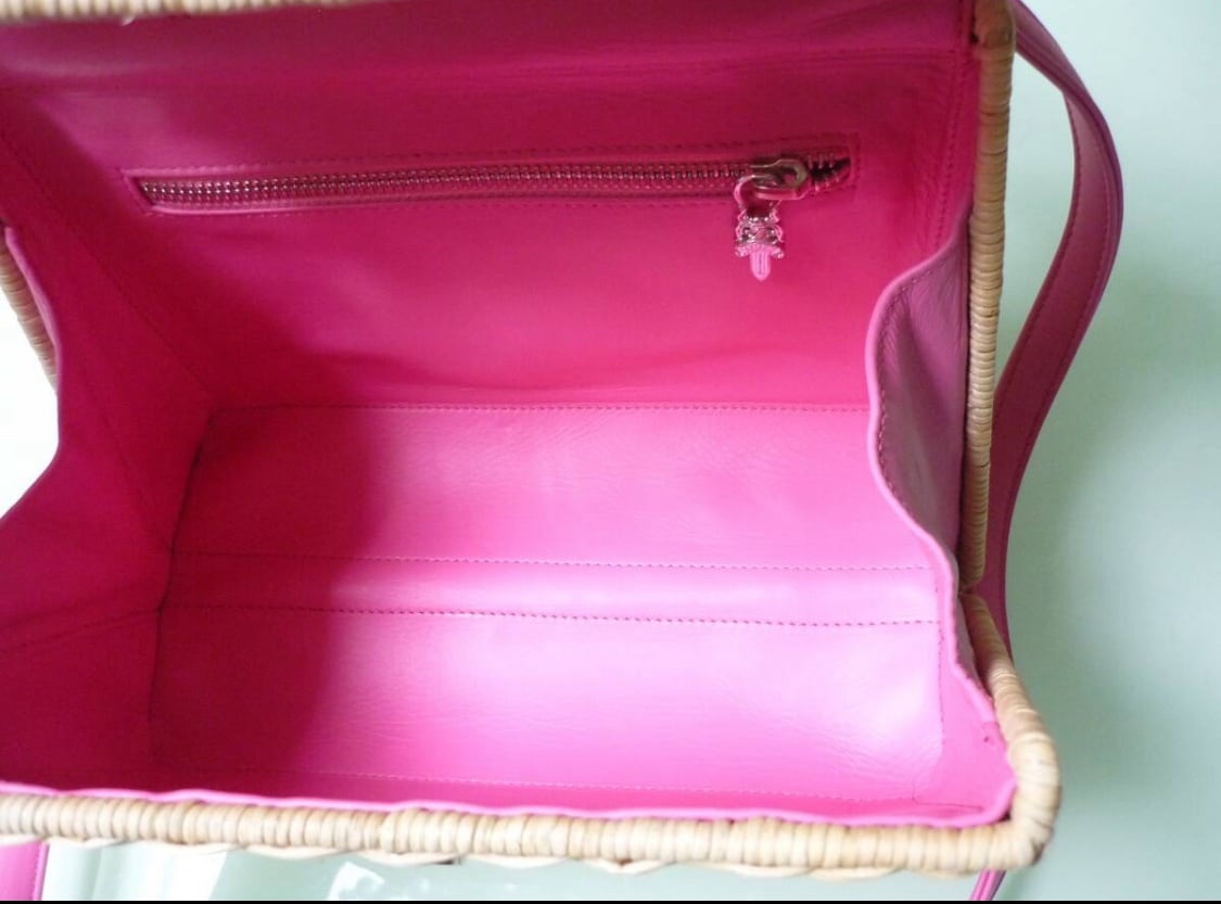 かご素材もピンクレザーもシルバークロスも全てが可愛すぎるショルダーバックです。間口も大きく開く使い勝手も良いカゴバックでございます!