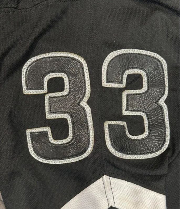 【説明】クロムハーツ プロホッケージャージです。ゆったりしたシルエットで、フロントにはゴシック調の“CH”のイニシャル、右袖には“33”のナンバリングが配されている。ブラックタイプの背面にはブランドを象徴するレザーのクロスパッチが施されており、その中心にもシルバー製のクロスを配置。とても魅力的なアイテムです。