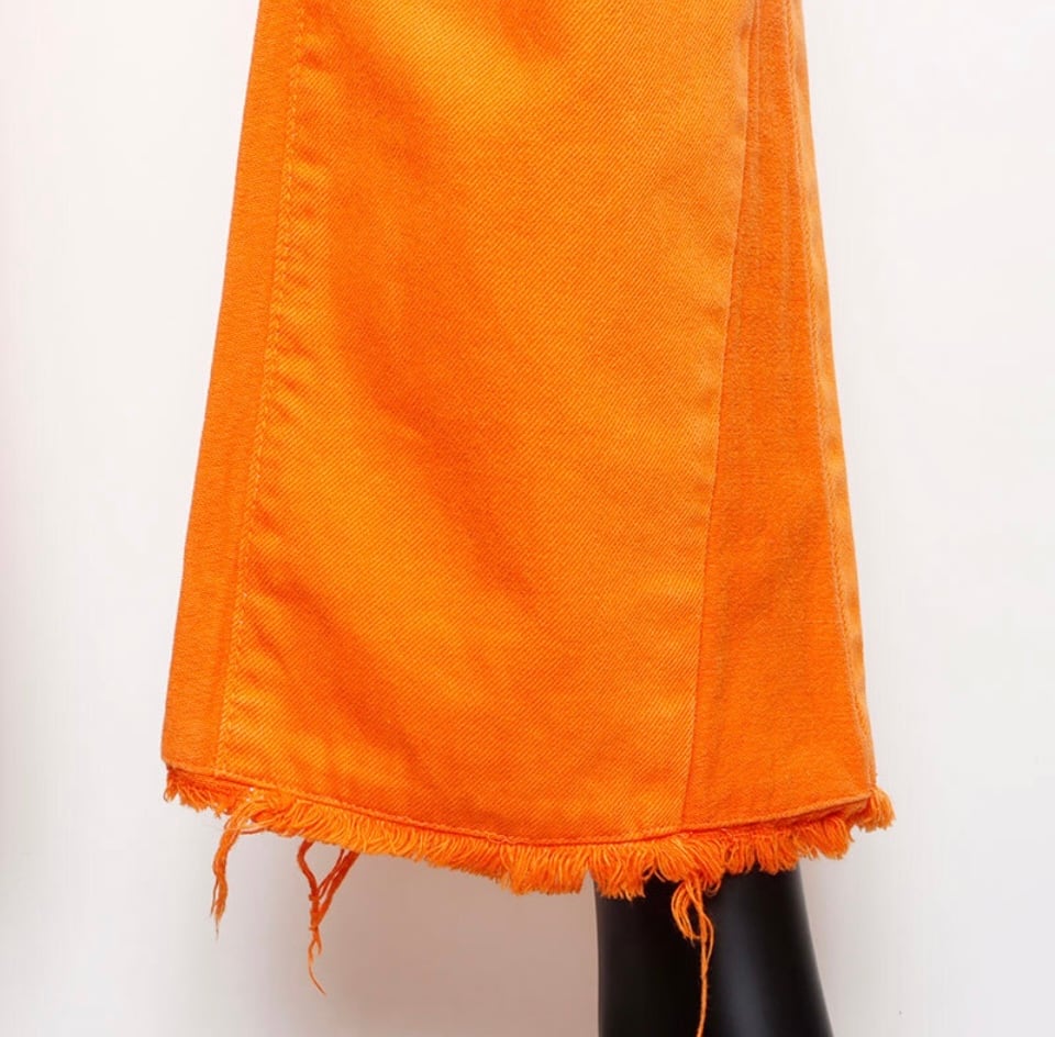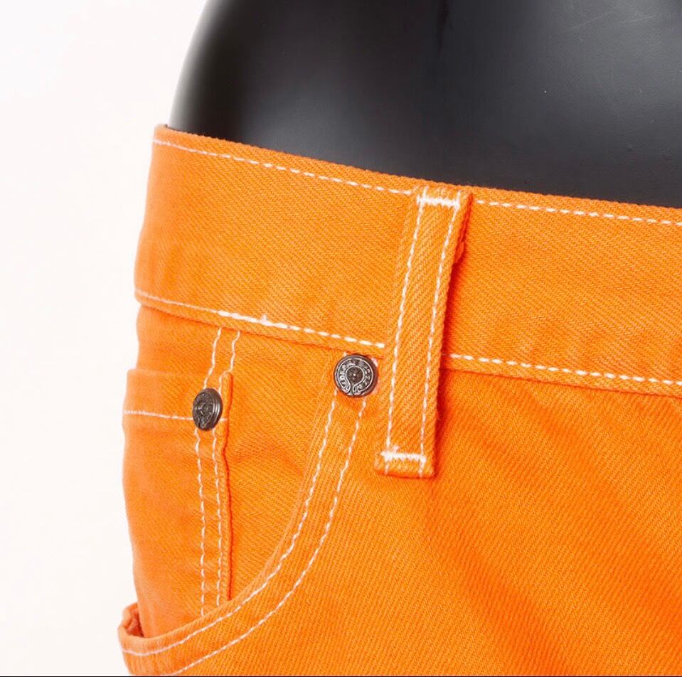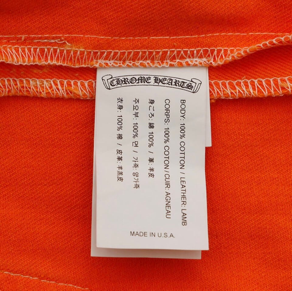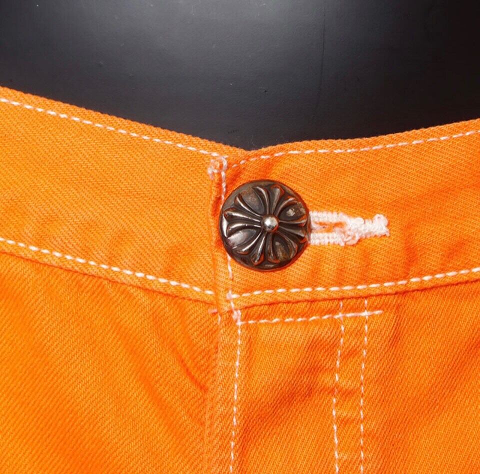 美品 CHROME HEARTS レザー クロス パッチ ワーク コットン Size:36 パンツ オレンジ