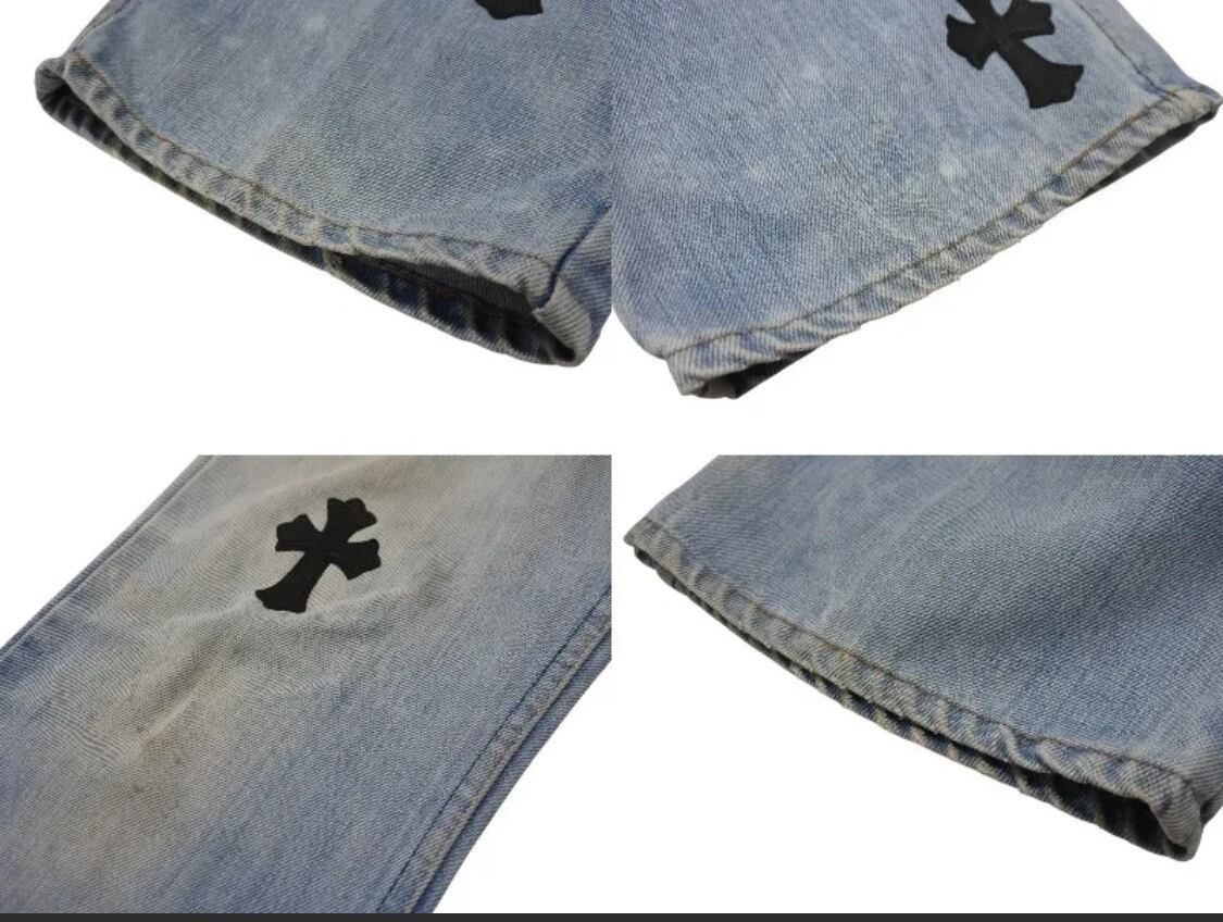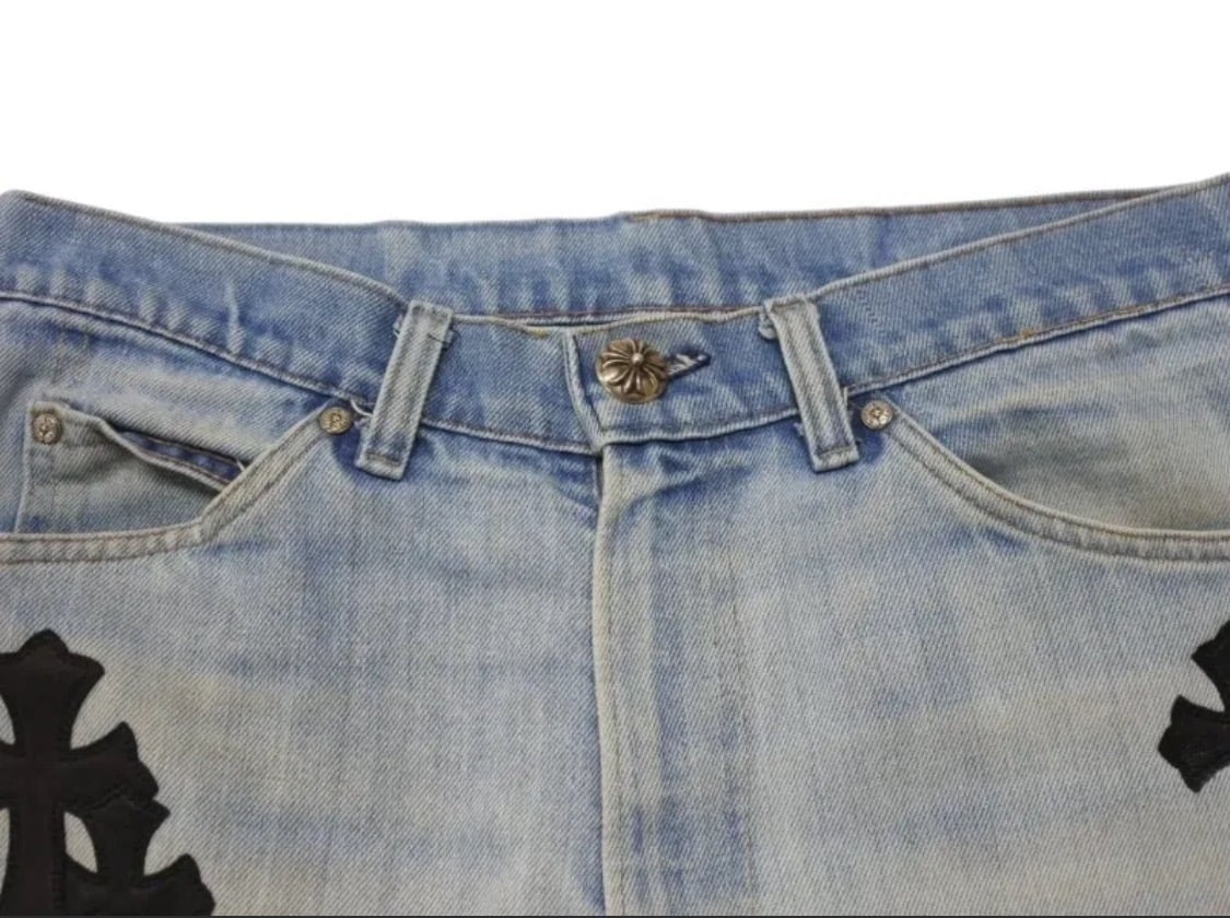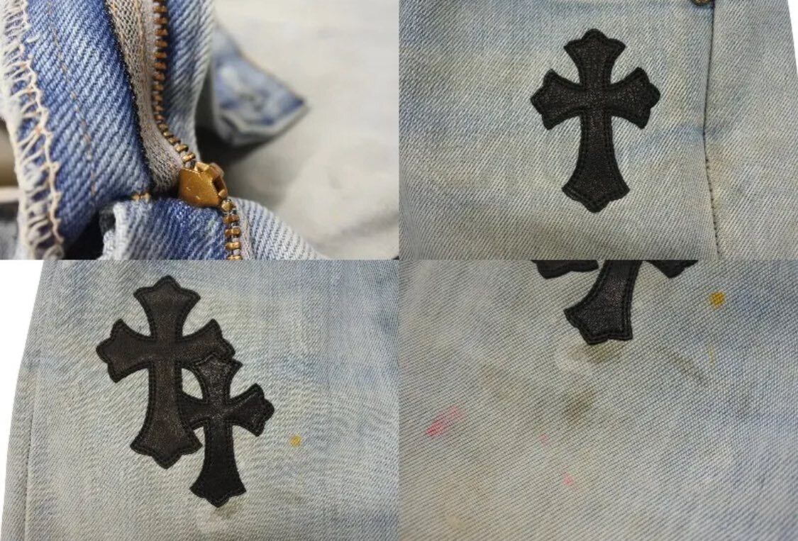【説明】クロムハーツ デニムパンツ になります。表面にふんだんにレザーパッチが使用されており、サイズ34の希少なパンツになります。