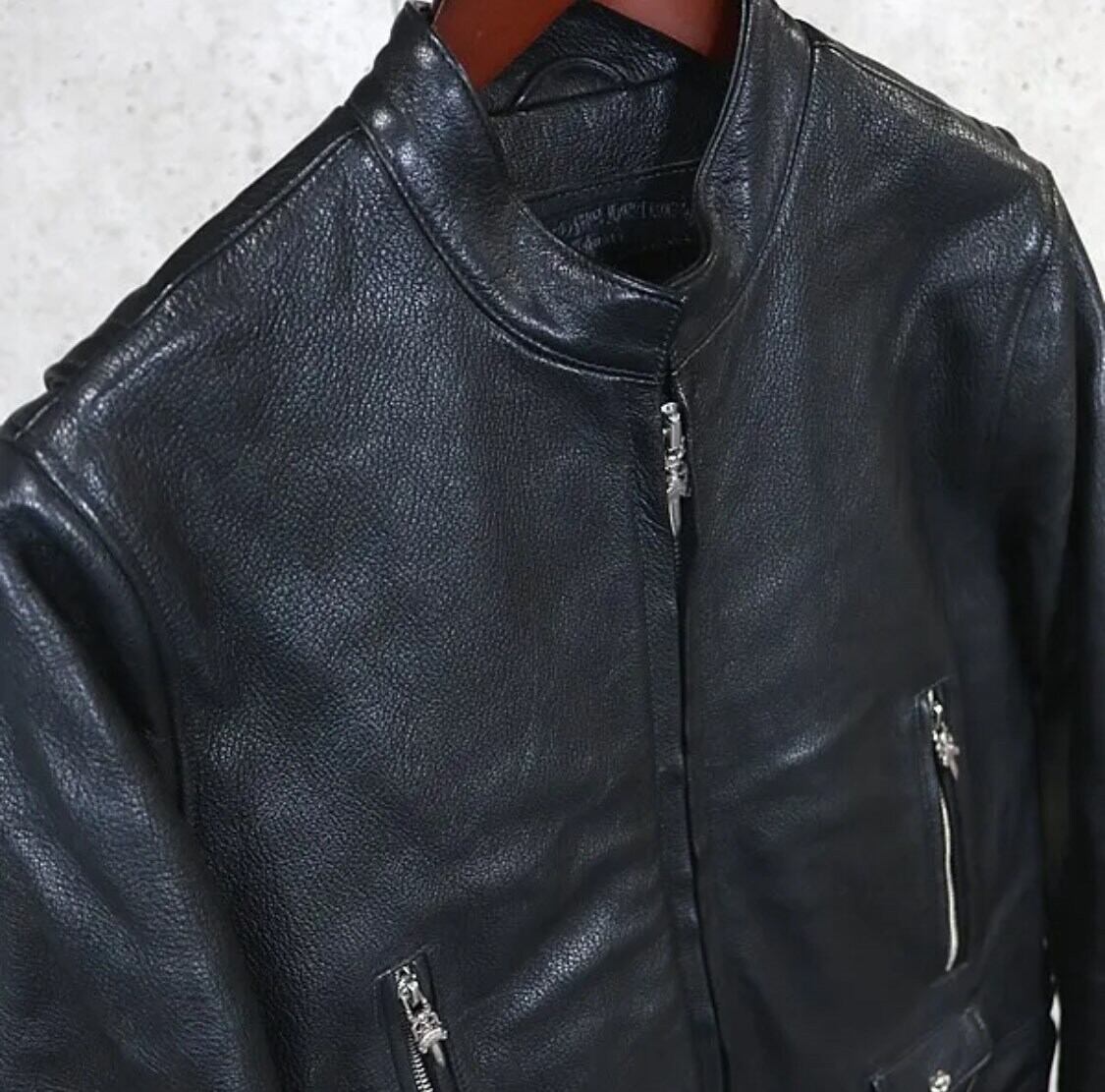 CHROME HEARTS クロムハーツ シングル ライダース ジャケット レザー メンズ シルバー