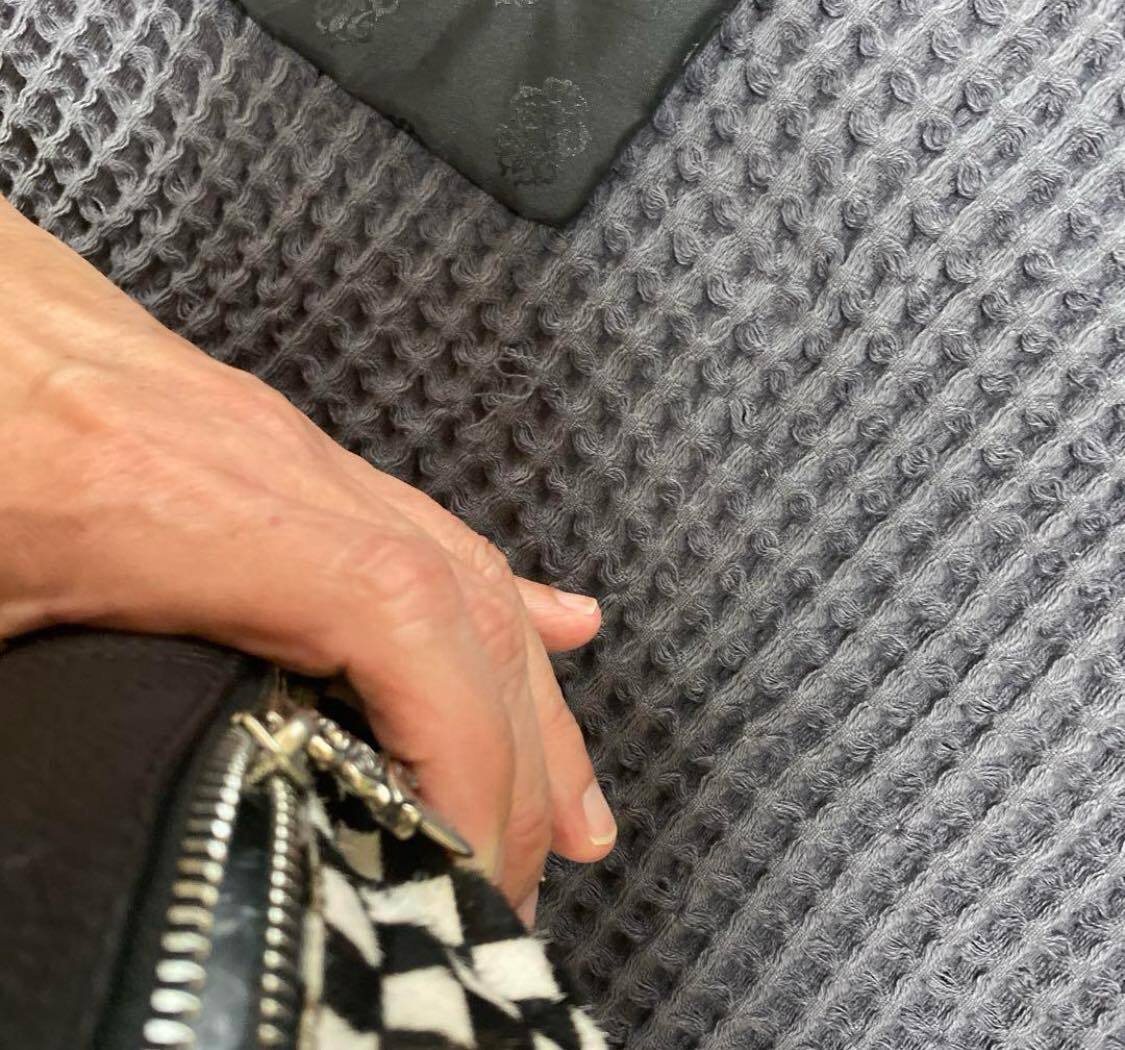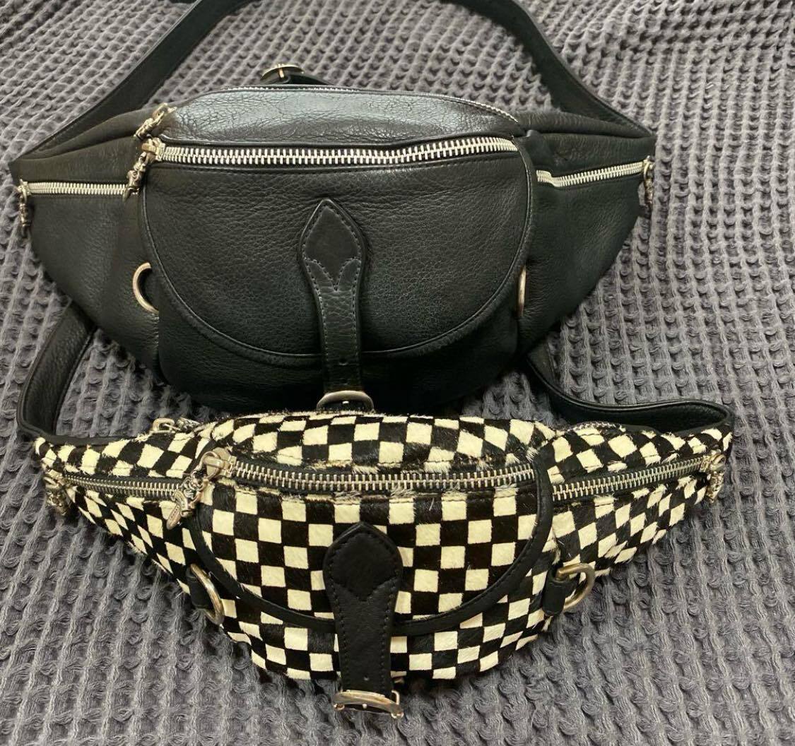チェッカーパターンのハラコとレザーのコンビネーションで、スタイリッシュなボディバッグ・ウエストポーチ