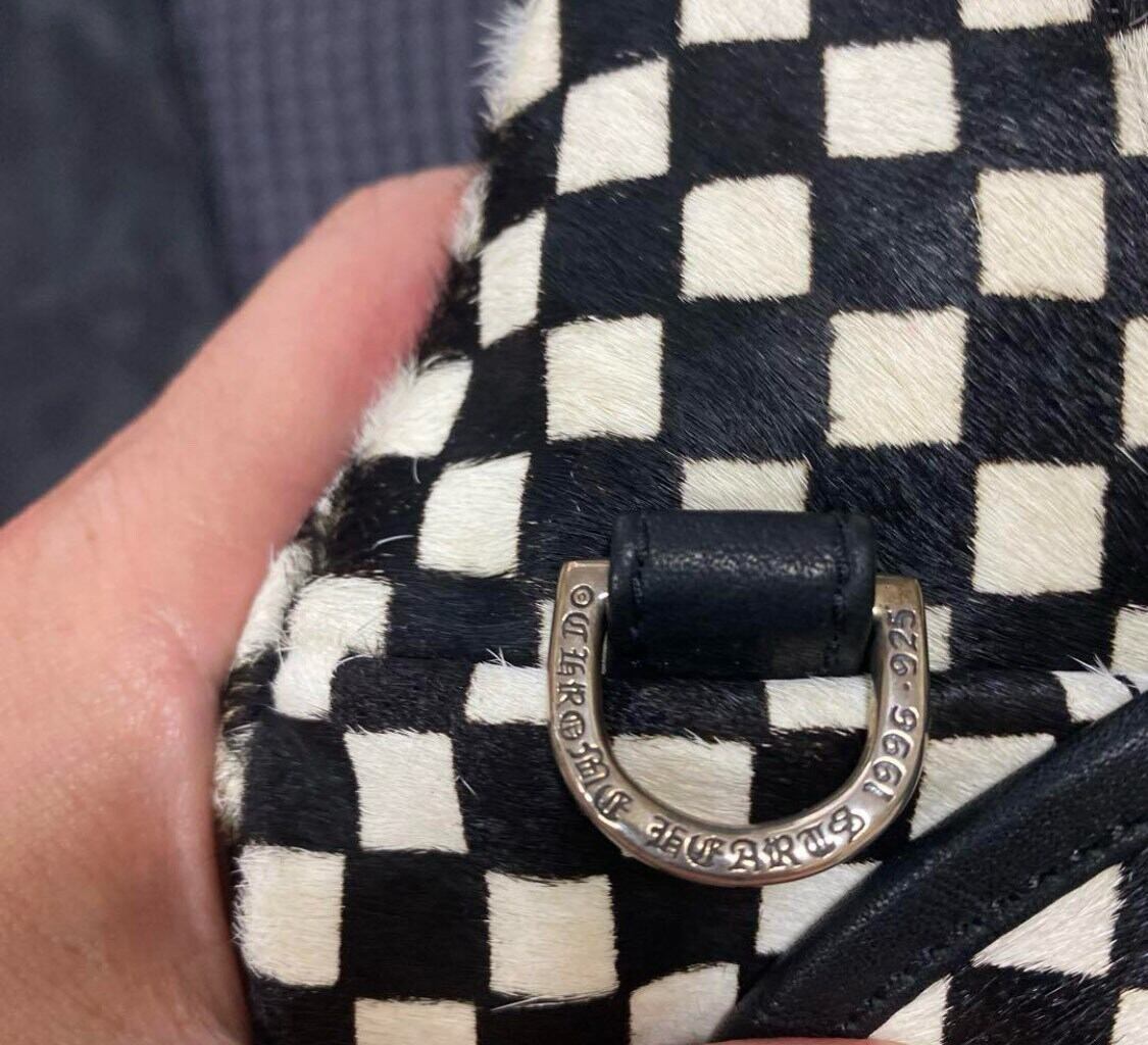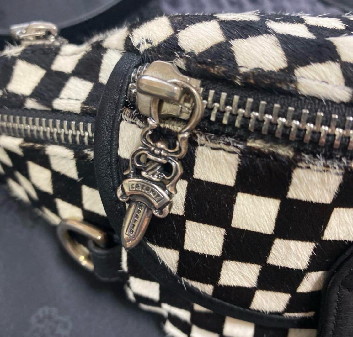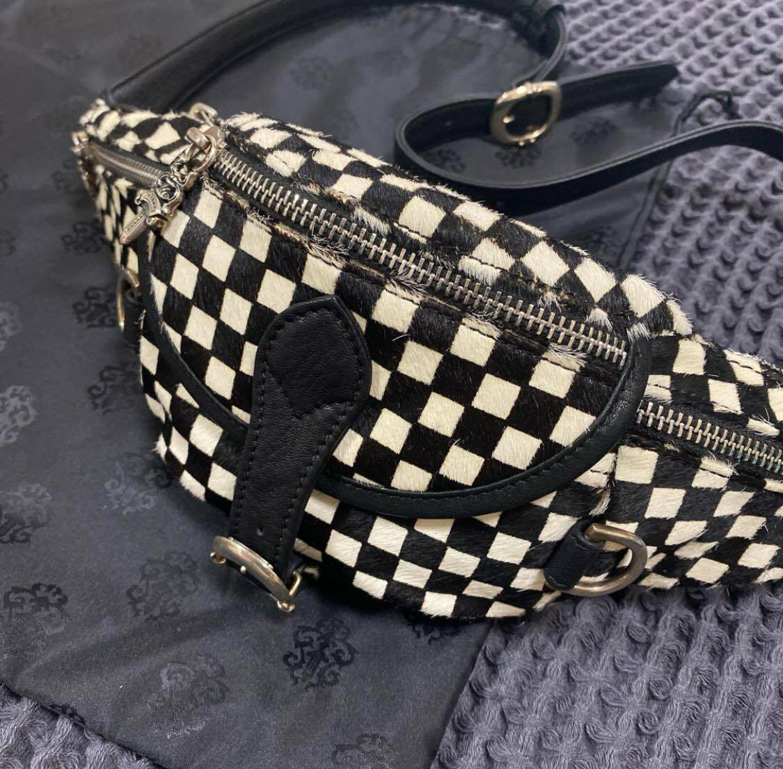 CHROME HEARTS クロムハーツ スナットパック ミニ ハラコ チェッカー柄 黒 白 ボディバッグ