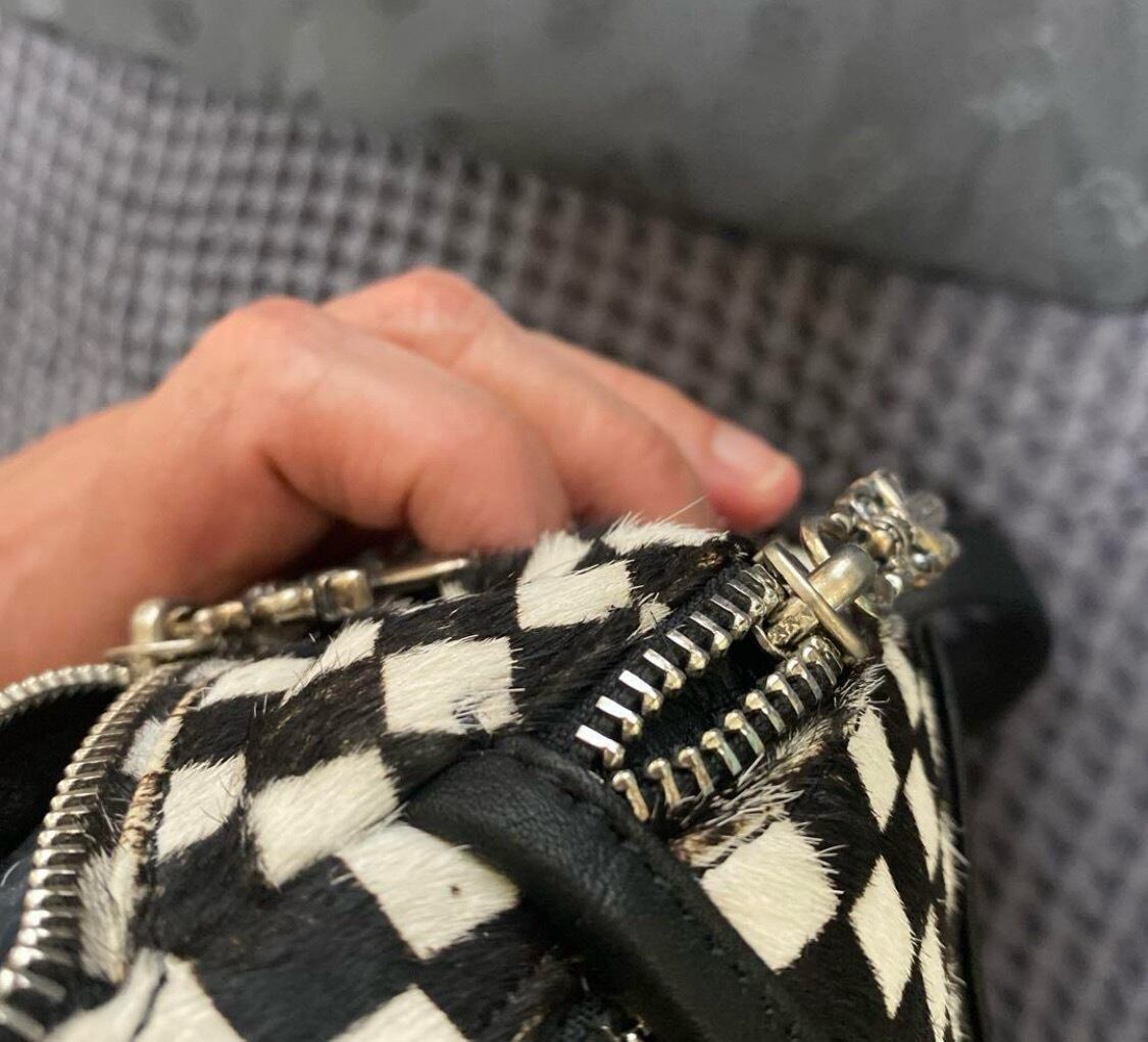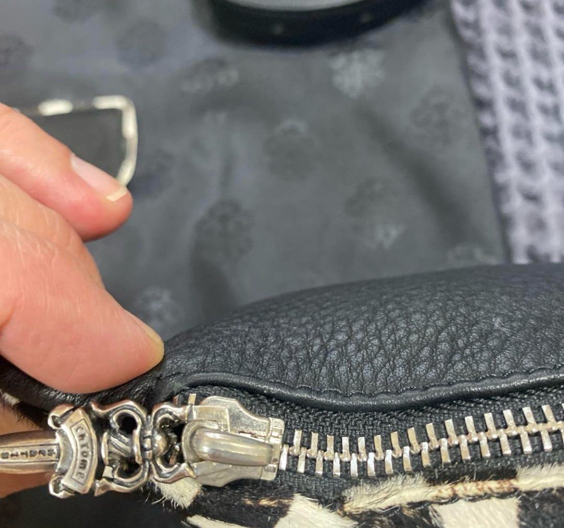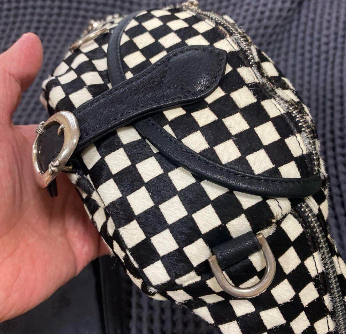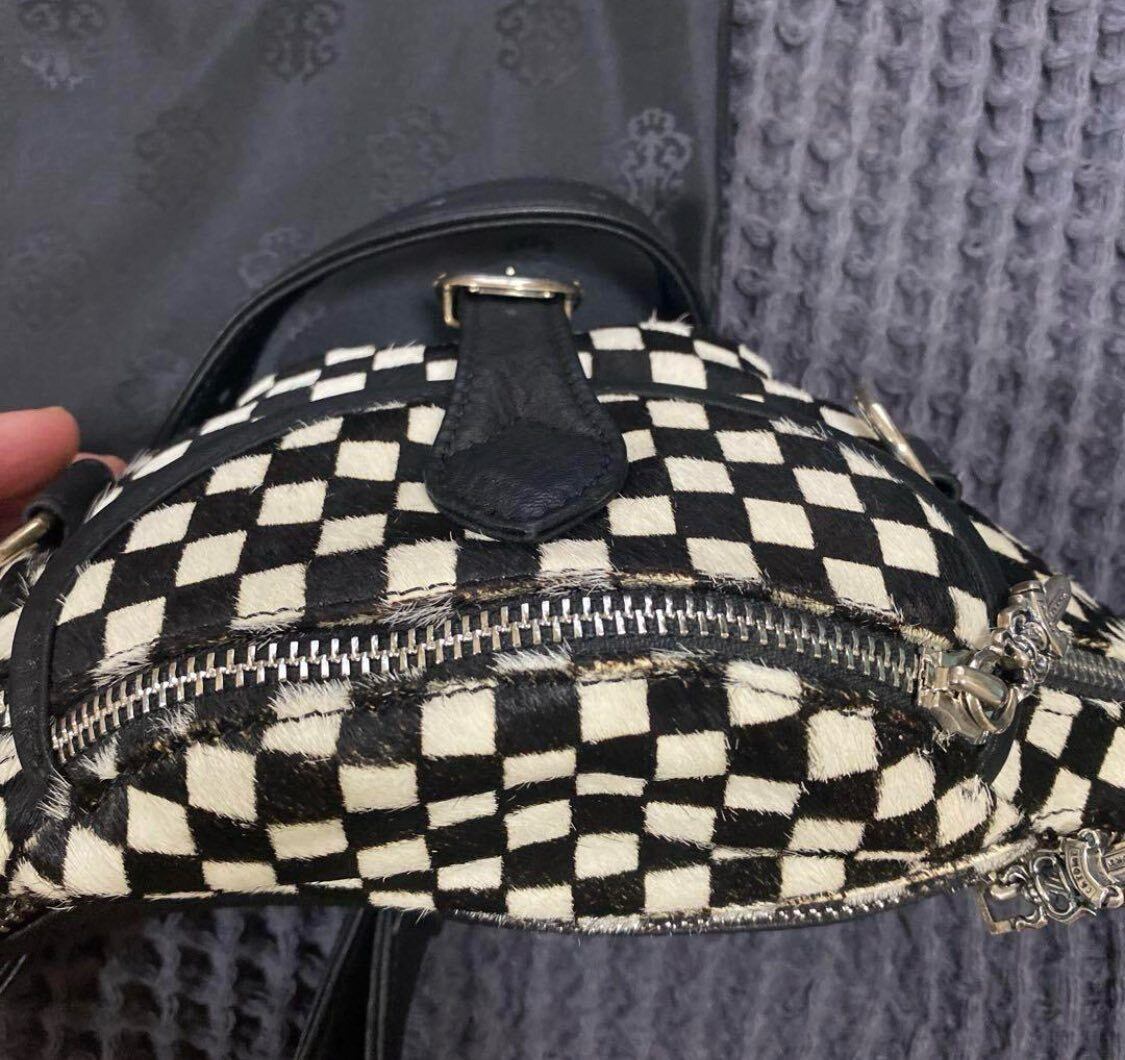 CHROME HEARTS クロムハーツ スナットパック ミニ ハラコ チェッカー柄 黒 白 ボディバッグ
