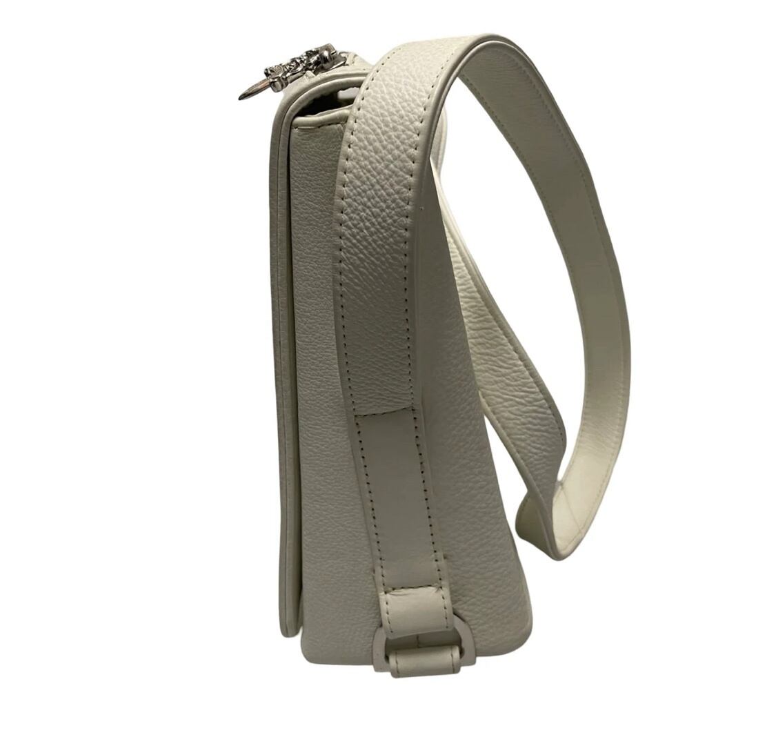 【商品名】クロムハーツ プラグ 3セメタリークロスパッチ レザーショルダーバッグ レザーバッグ クロスパッチ ダガージップ ホワイト