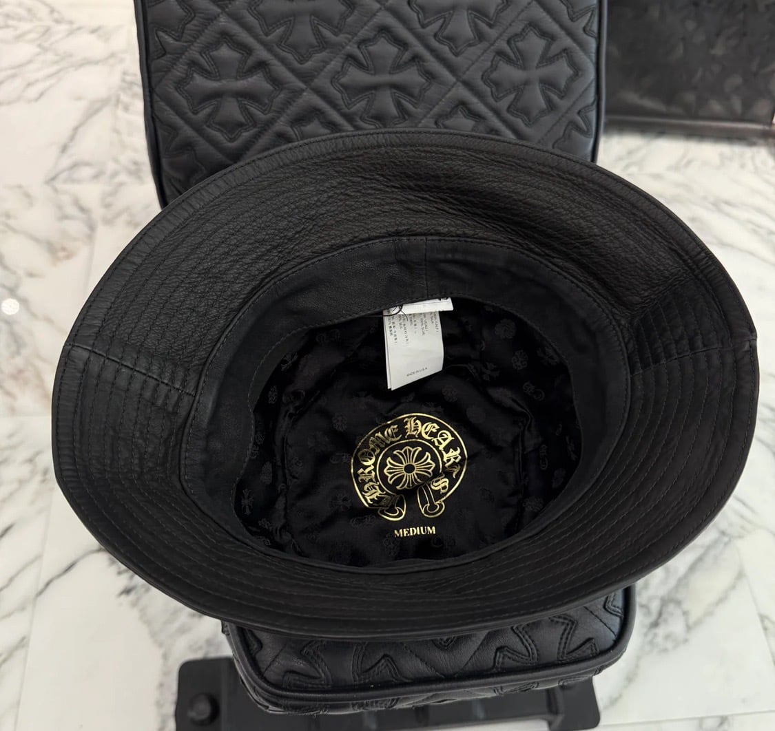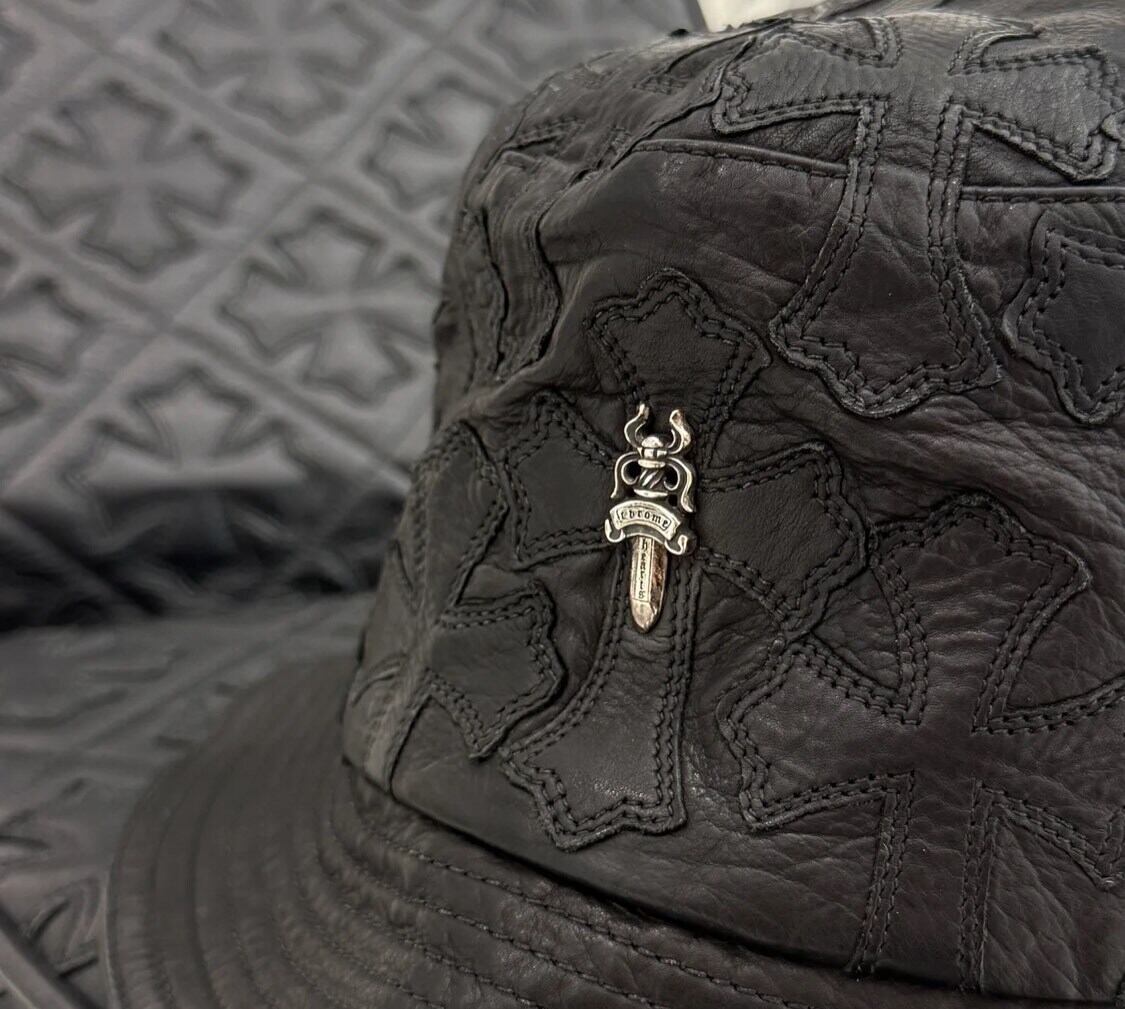 CHROME HEARTS クロムハーツ Dagger Cross Leather Patch Leather Bucket Hat ハット 帽子