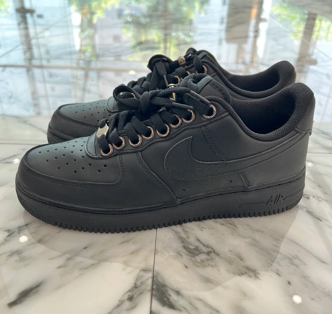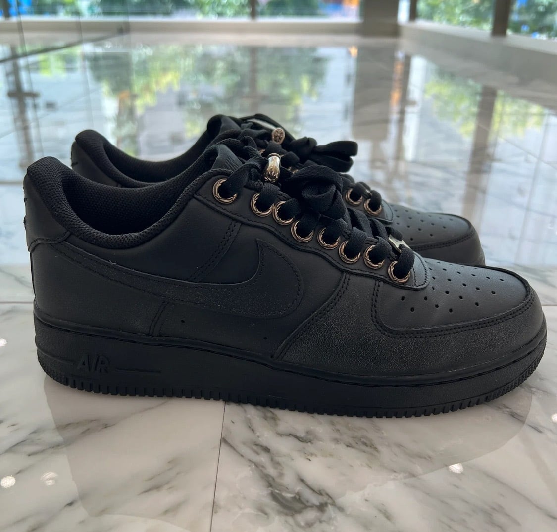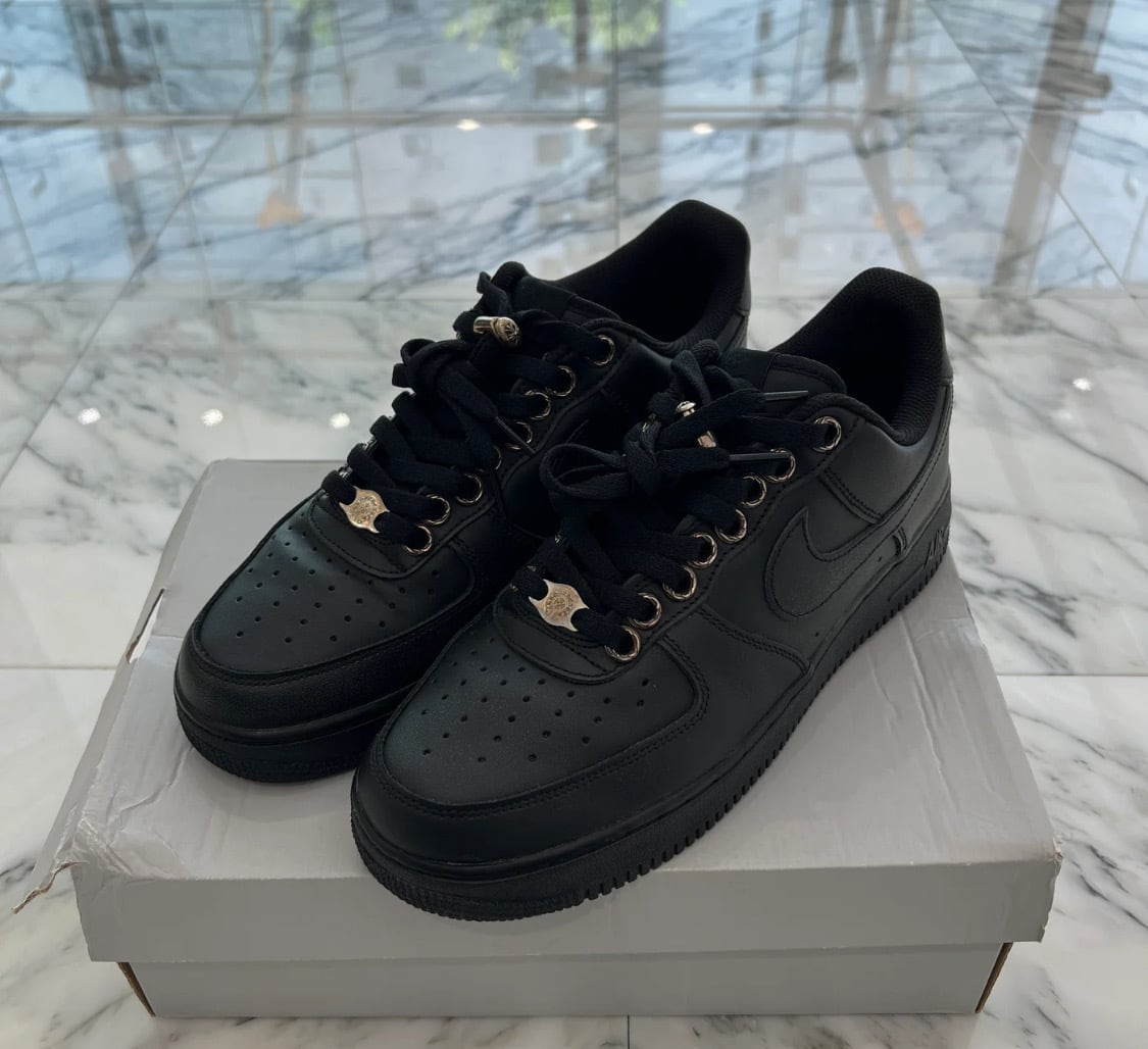 【商品名】クロムハーツ×ナイキ エアフォース1 '07 カスタム レザースニーカー 靴 カスタムスニーカー ローカットスニーカー ホースシューディテール グロメット ブラック サイズUS10(28.0cm)