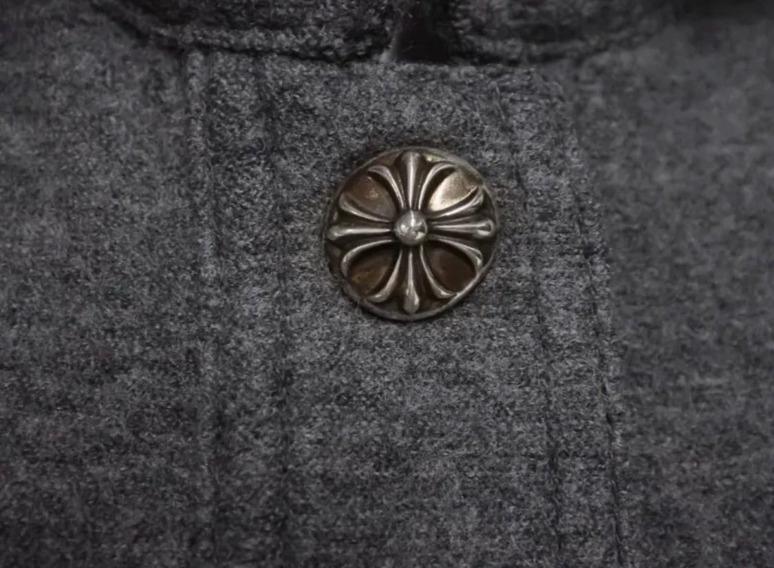 CHROME HEARTS クロムハーツ ROLA ローラ ウール長袖シャツ クロスボールボタン シルバー925 グレー