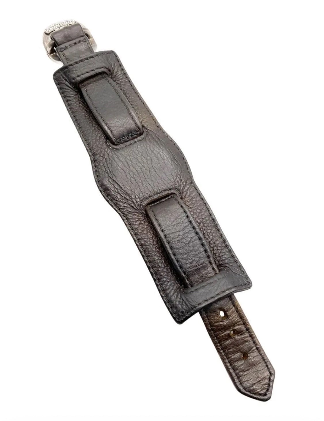 【紹介文】:BULOVA(ブローバ)製のヴィンテージ手巻きミリタリーウォッチに、CHROME HEARTS(クロムハーツ)のレザーブレスレットを組み合わせたカスタムウォッチ。