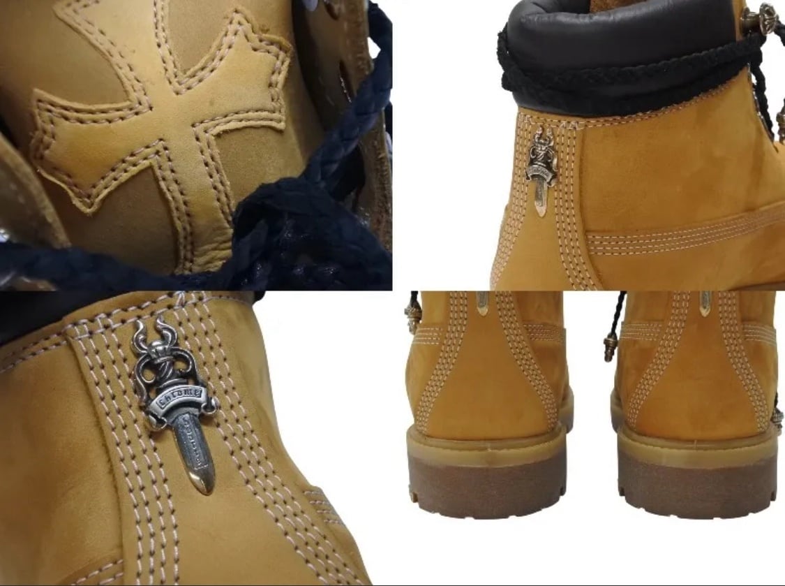 【説明】クロムハーツ × ティンバーランド コラボのブーツです。大変希少な新品未使用品です。クロスボールや、クロスパッチ、ダガーの装飾がふんだんに使用されており、目を引くアイテムです。