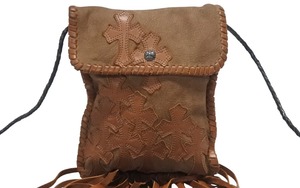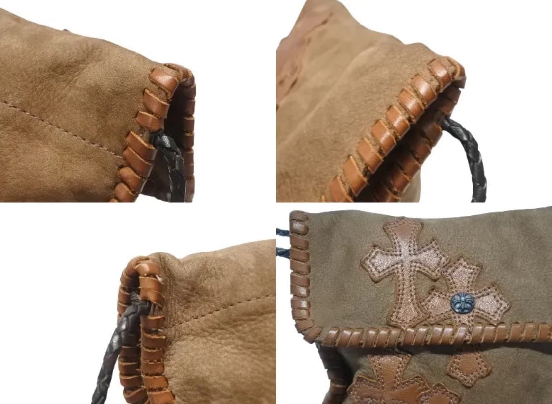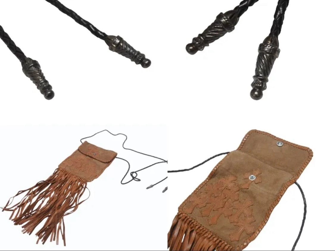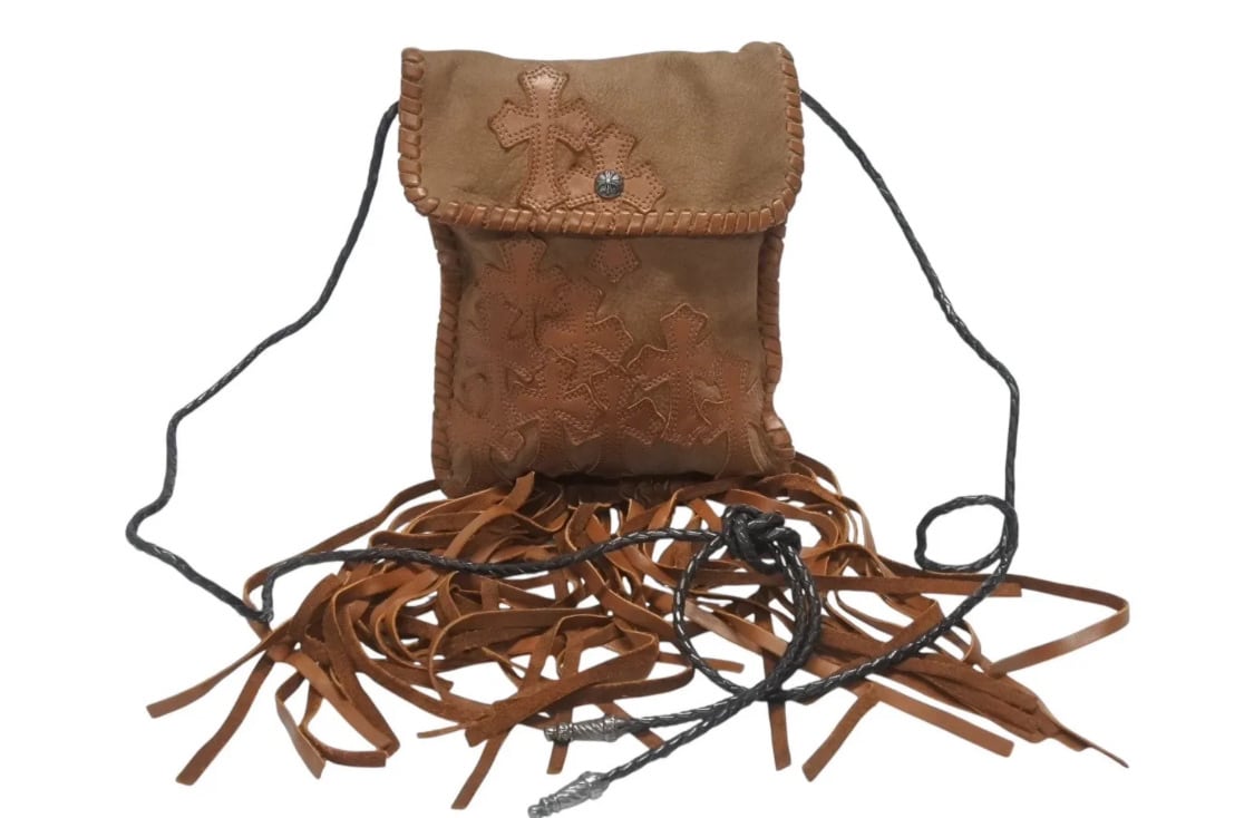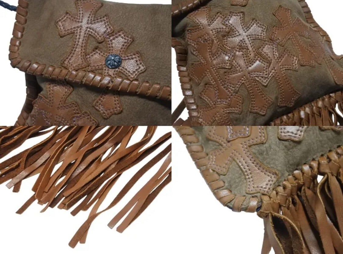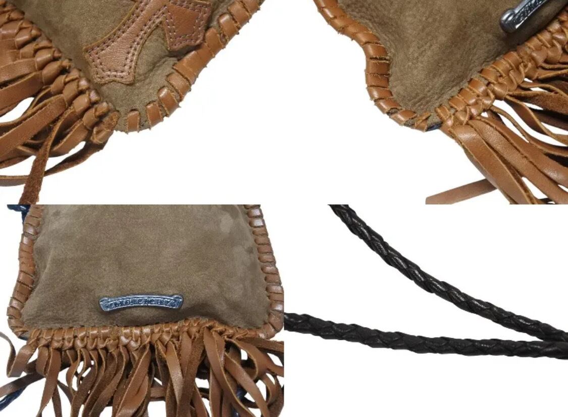 【説明】クロムハーツのレザーポシェットです。ブラウンのクロスパッチが特徴的なアイテムです。ストラップにはレザーブレード、表面にはフリンジが施されており、クロスパッチのショルダーバッグよりも希少で珍しいアイテムです。