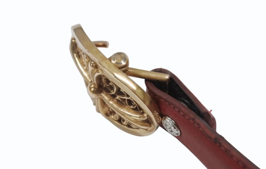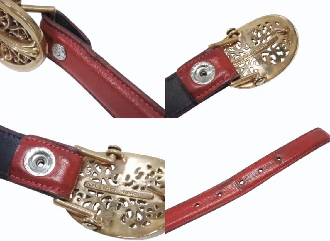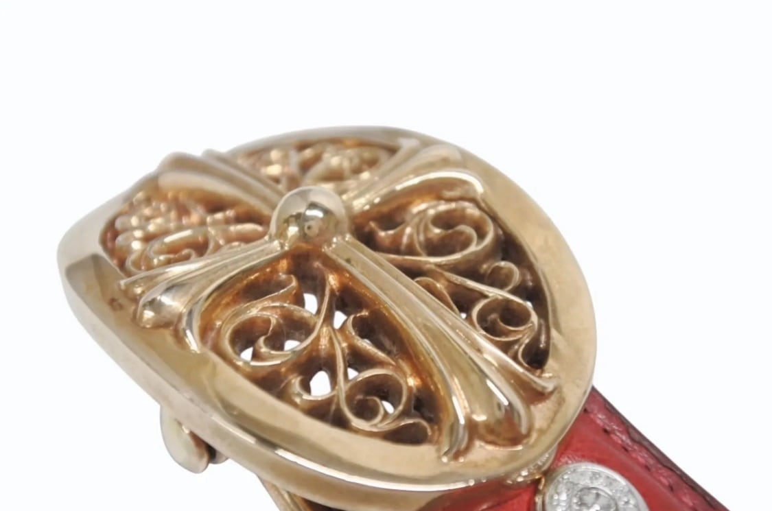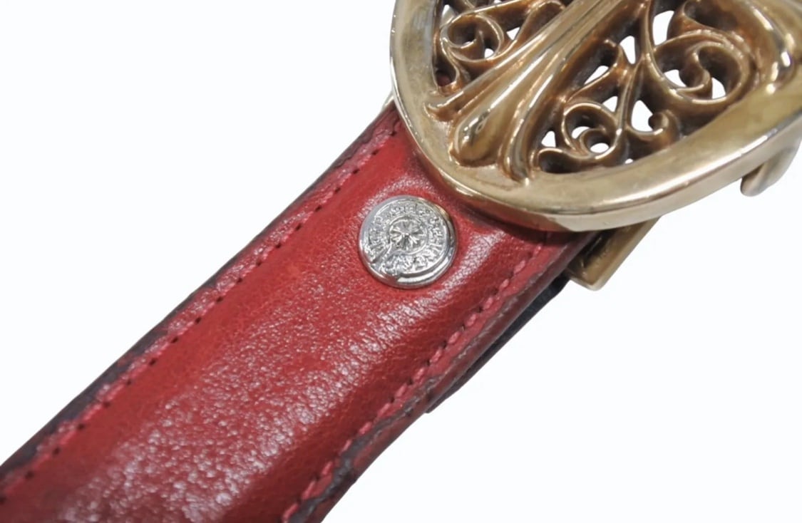 CHROME HEARTS クロムハーツ ベルト バックル クラシックオーバルクロス スモール ブロンズ レザー レッド