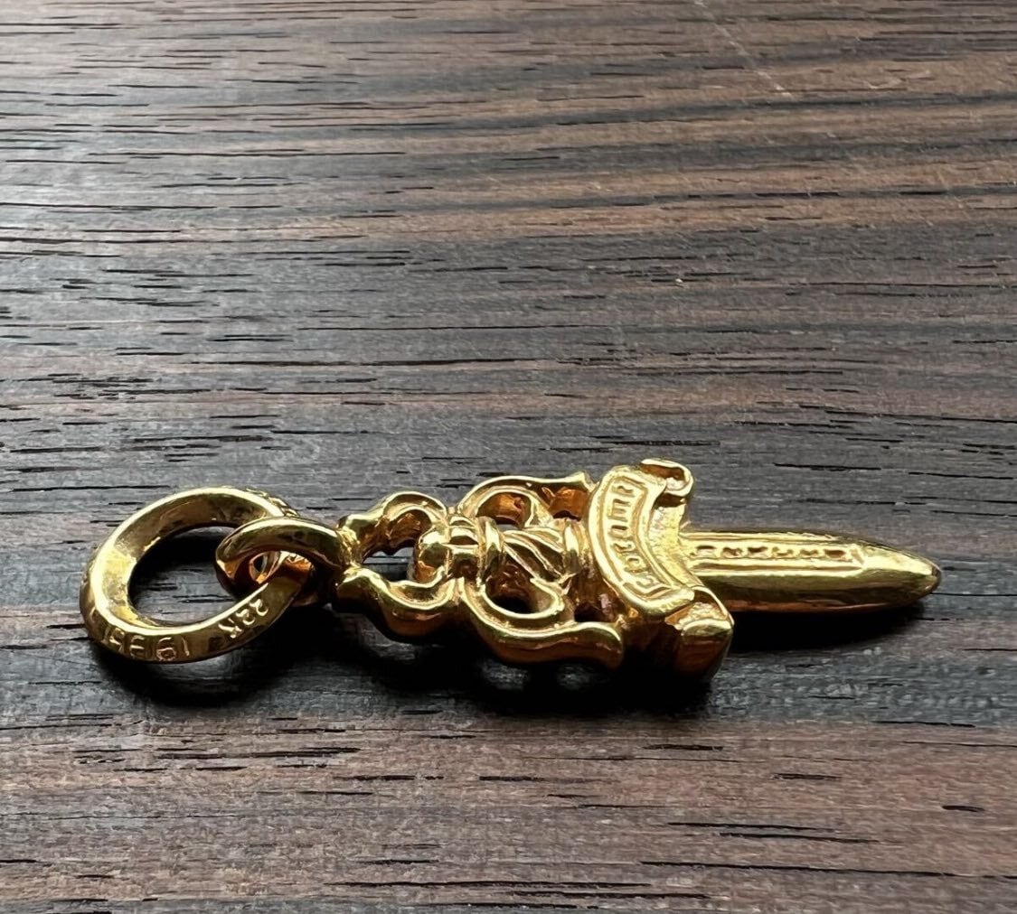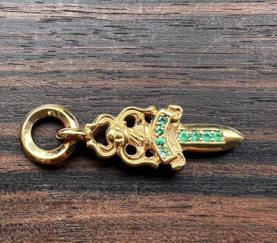 CHROME HEARTS クロムハーツ #5 ダガー パヴェ エメラルド チャーム 22Kゴールド ペンダントトップ