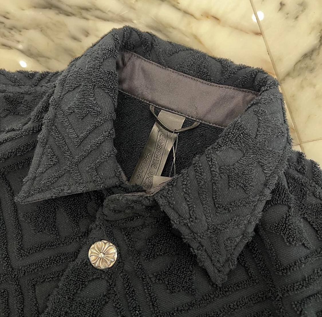 クロムハーツ ワイノット CHプラス総柄 パイル地 テリー シャツ/ショーツ セットアップ 上下セット クロスボールボタン CHプラス シルバープレート ブラック サイズS