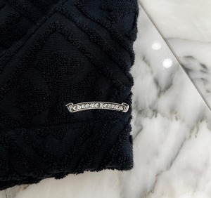 クロムハーツ ワイノット CHプラス総柄 パイル地 テリーショーツ ハーフパンツ コットンパンツ CHプラス総柄 タオル生地 スクロールロゴプレート ドローストリング ブラック サイズM