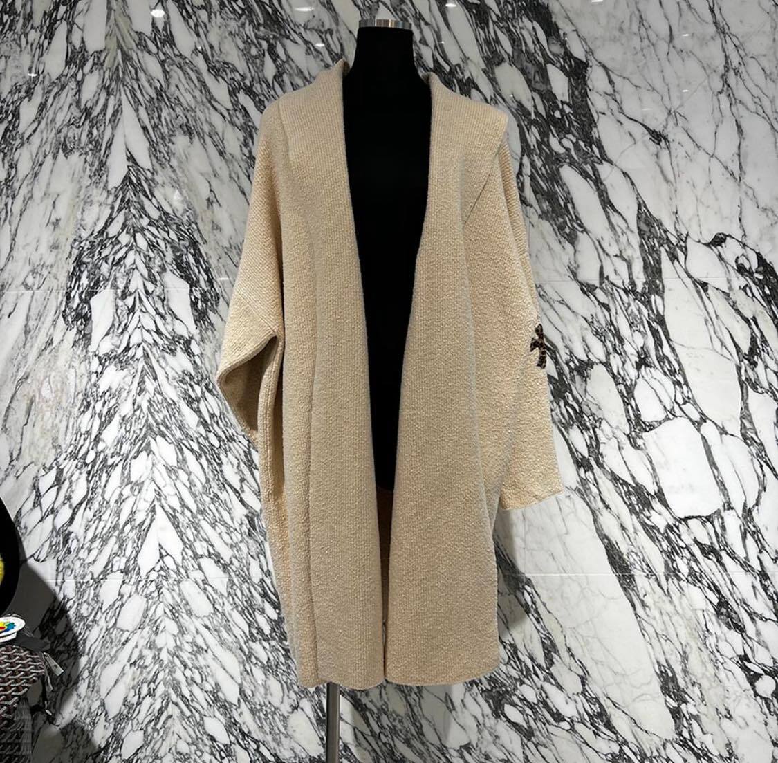 クロムハーツ ワイノット レオパード ハラコ レザークロスパッチ ニット カーディガン コート ロングコート 肩クロス シルバープレート カーフスキン ヒョウ柄 アイボリー サイズLRG / XL (180/112B)