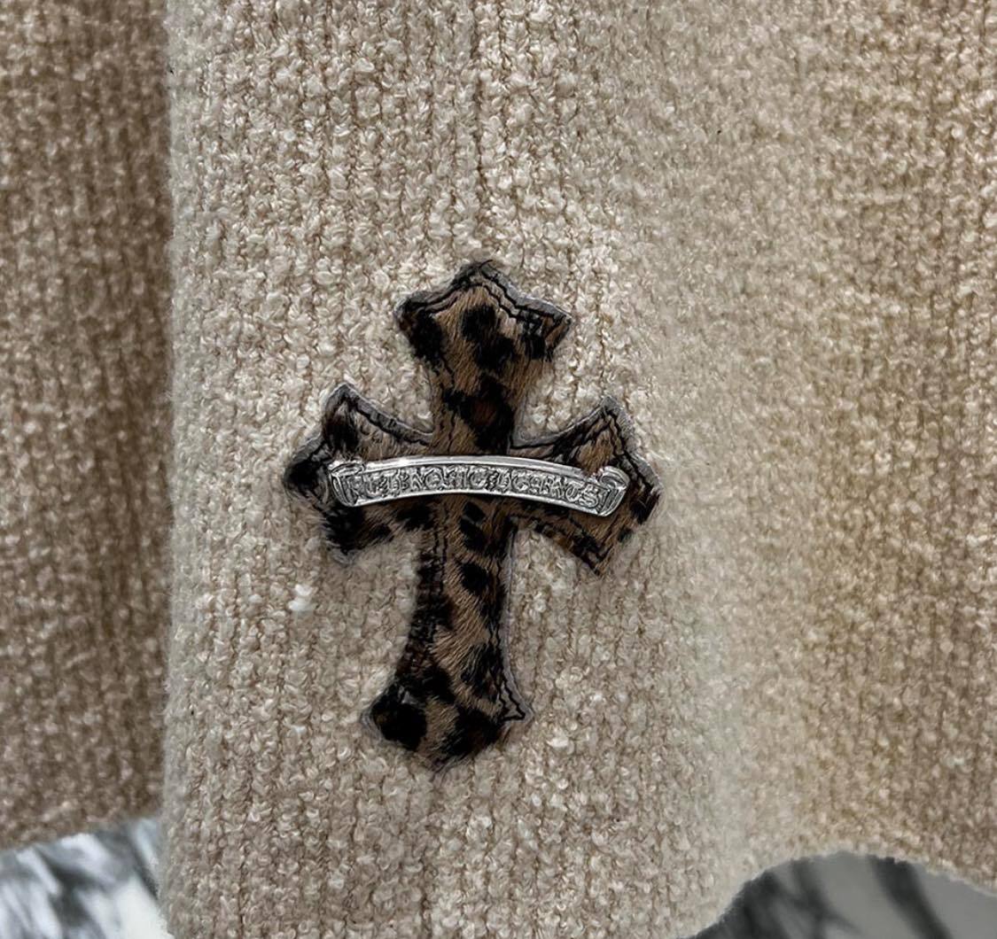 CHROME HEARTS クロムハーツ ワイノット レオパード ハラコ レザークロスパッチ ニット カーディガン シルバープレート アイボリー