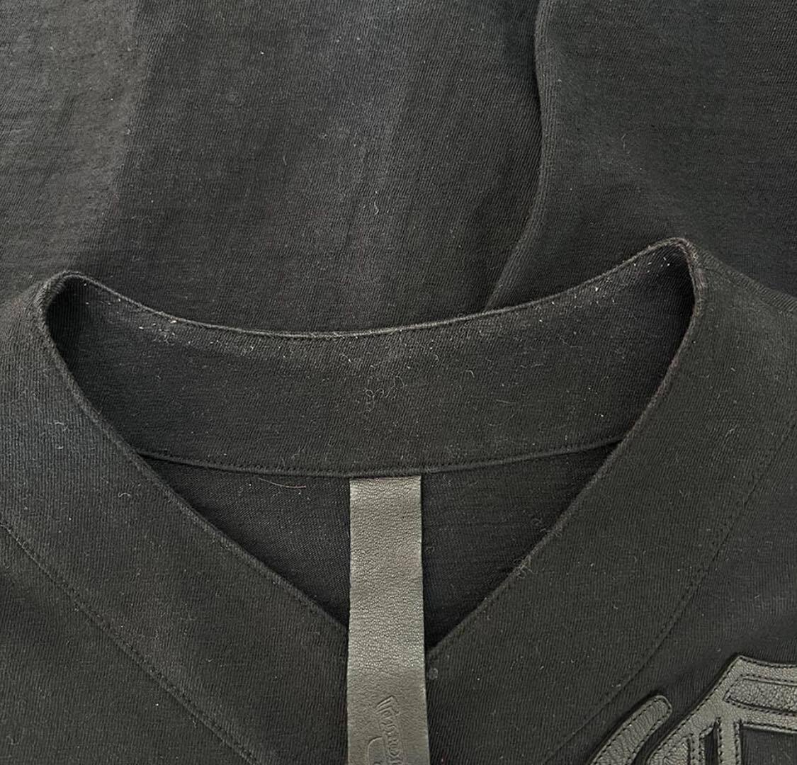 CHROME HEARTS クロムハーツ レザーパッチ クロスボールボタン ベースボール コットンシャツ 半袖シャツ CHロゴパッチ シルバー金具 シルバー925 ブラック