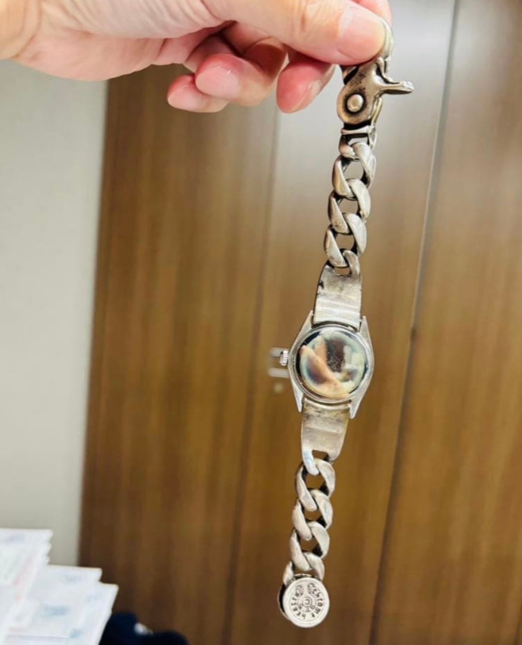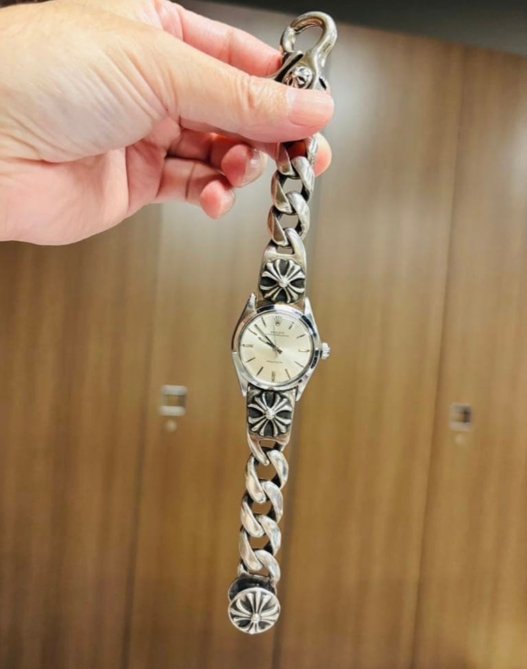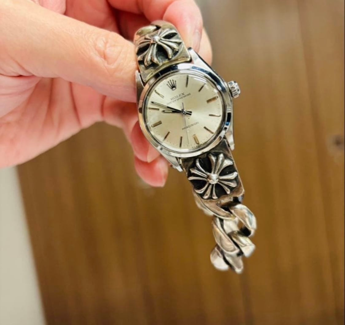 クロムハーツのブレスレットが装着されたロレックス オイスタープレシジョンです。