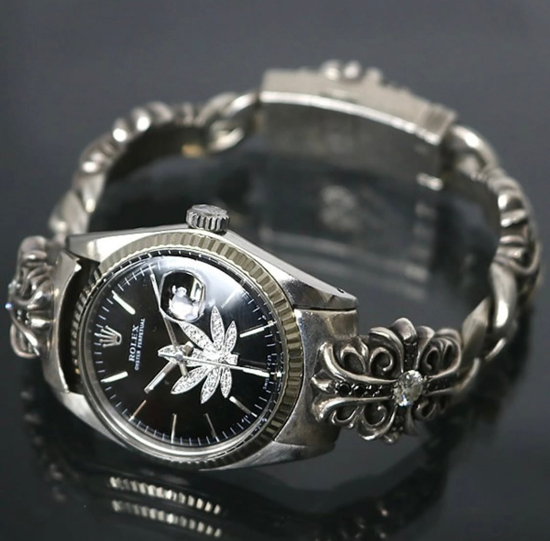 CHROME HEARTS クロムハーツ キーパーウォッチブレス ロレックス1601 デイトジャスト ダイヤ×ブラックダイヤモンド 腕時計