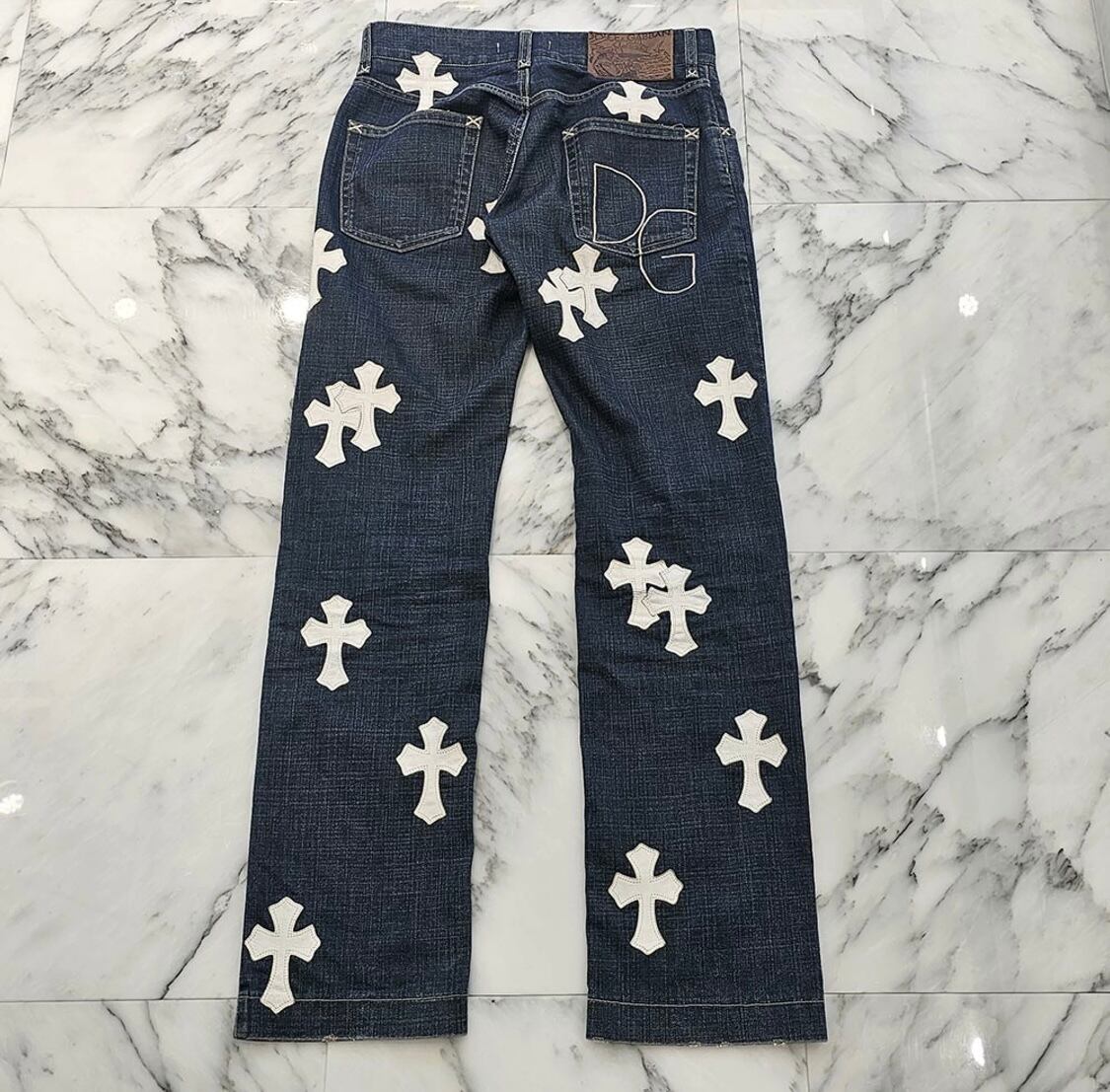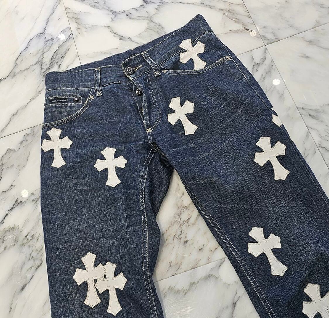 CHROME HEARTS × DOLCE & GABBANA VNTG Cross Leather Patch Jeans Size 44 クロムハーツ × ドルチェ&ガッバーナ ヴィンテージ クロスレザーパッチ ジーンズ デニムパンツ CHプラス装飾 レザーパッチ クロスパッチ
