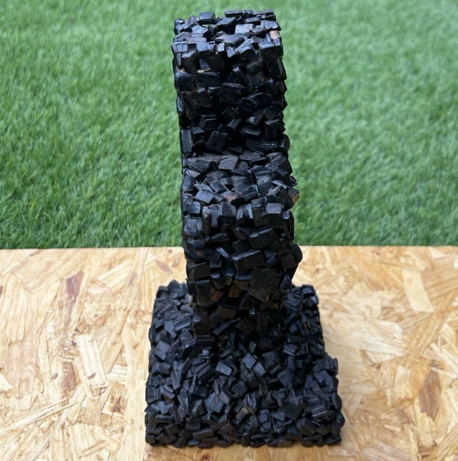 細かなエボニー材を積層加工した立体造形のクロスモチーフで、存在感のあるインテリアアートピースです。
