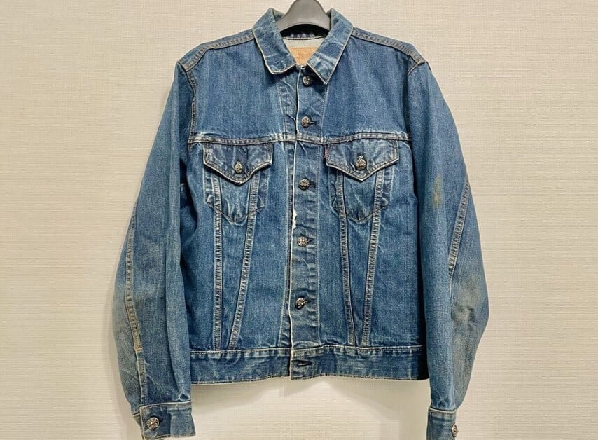 クロムハーツでは今はオーダーはできないですが、こちらは当時の上顧客のオーダー品となります。70505にクロスボールボタン、スクロールラベル、デニムクロスパッチが付けられています。もちろんオーダー品のため内タグはありません。ボディは背タグにケアタグ付きですので、68年〜71年頃の最終ビッグEとなります。調べてみると70506のデニムクロスパッチもあるみたいです。