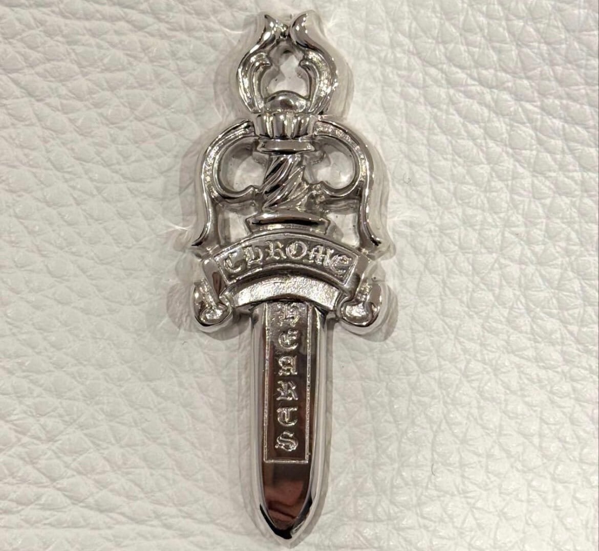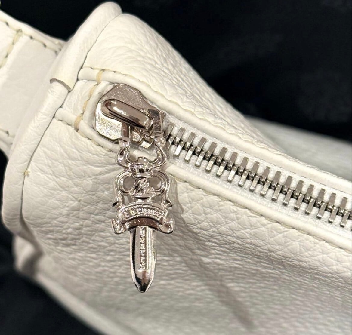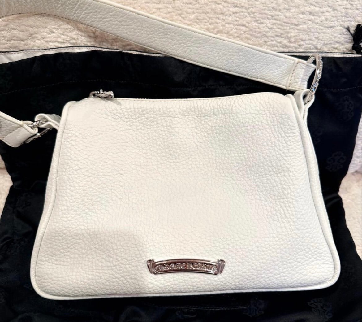 CHROME HEARTS クロムハーツ チキンナゲット スモールレザー ショルダーバッグ ダガージップ ダガー装飾 ソフトレザー スクロールロゴ ホワイト