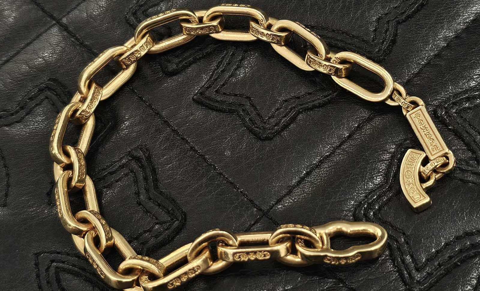 CHROME HEARTS クロムハーツ 22K ペーパー E チェーン ブレスレット アクセサリー ヴァーティカルロゴ 22K ゴールド 8インチ