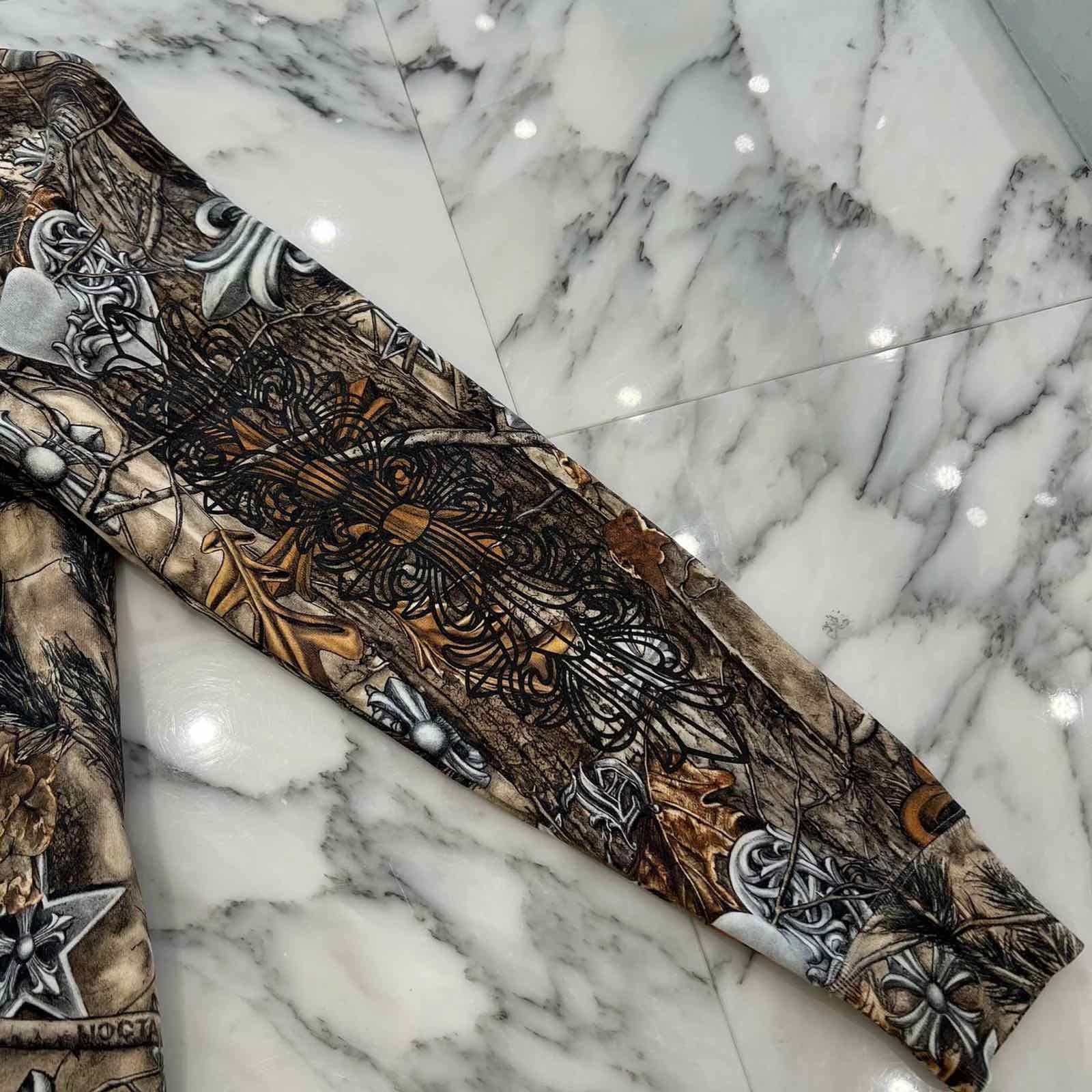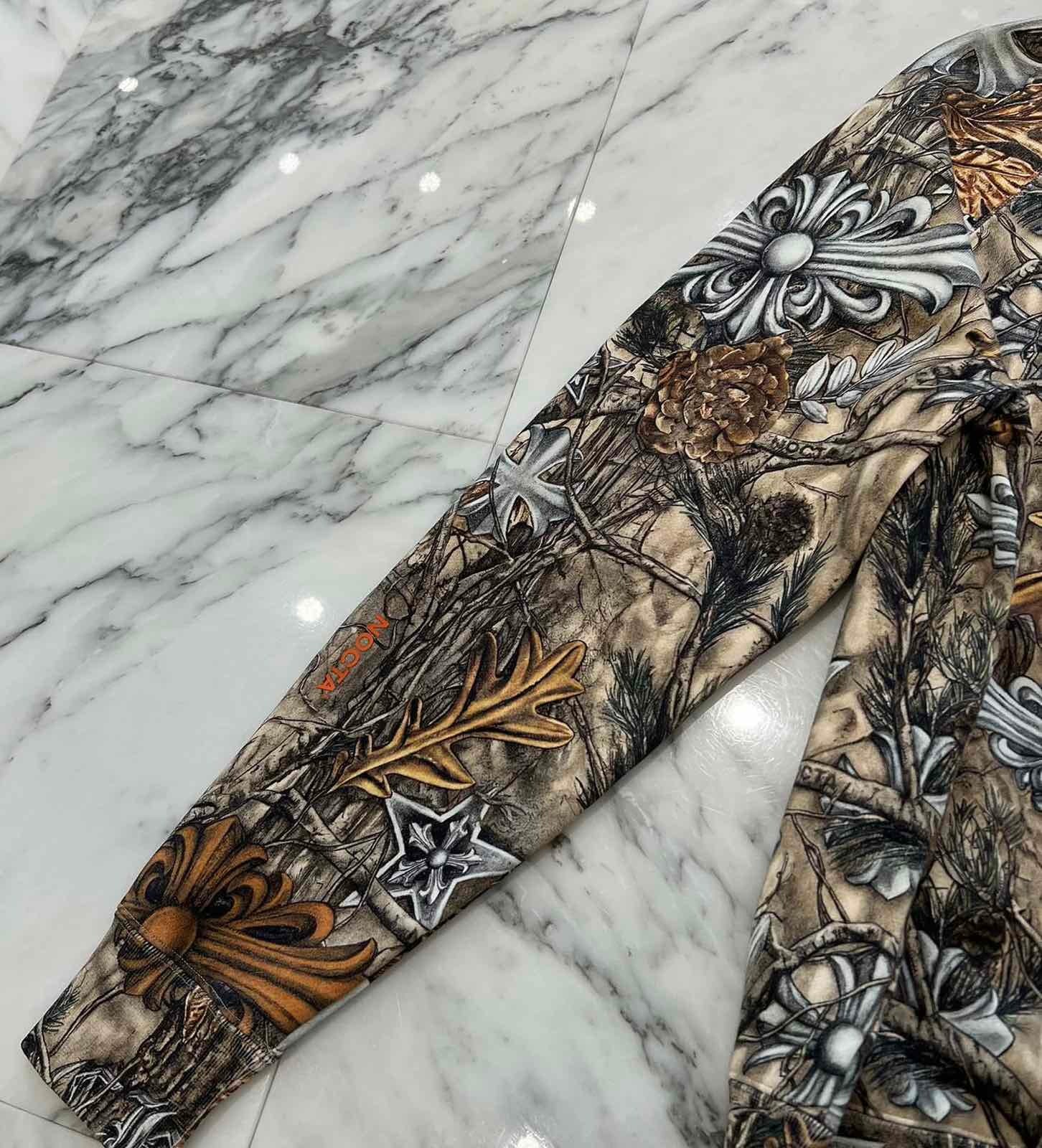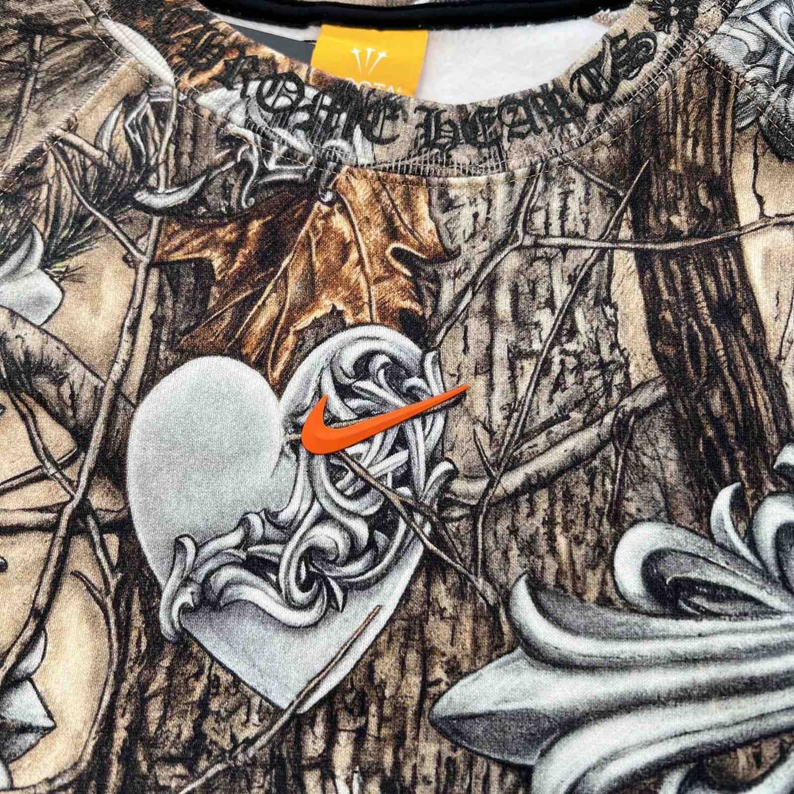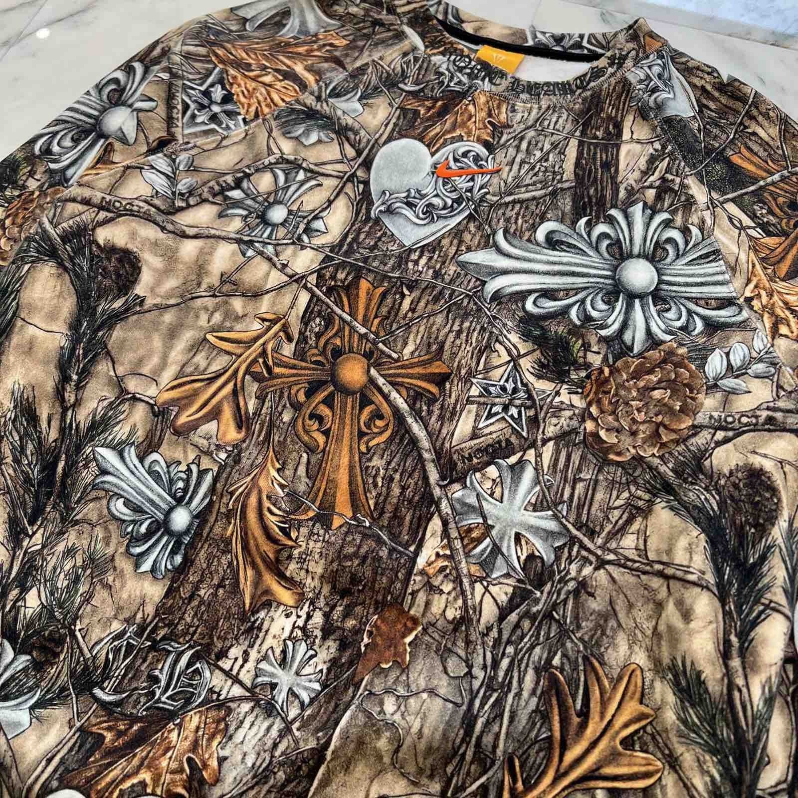 CHROME HEARTS クロムハーツ × ナイキ × ドレイク ノクタ カモネック ロゴクルーネック スウェットシャツ トレーナー ラバーロゴ カモフラ フローラルクロス ホースシュー RS3 総柄 トリプルコラボ カモフラ × マルチカラー