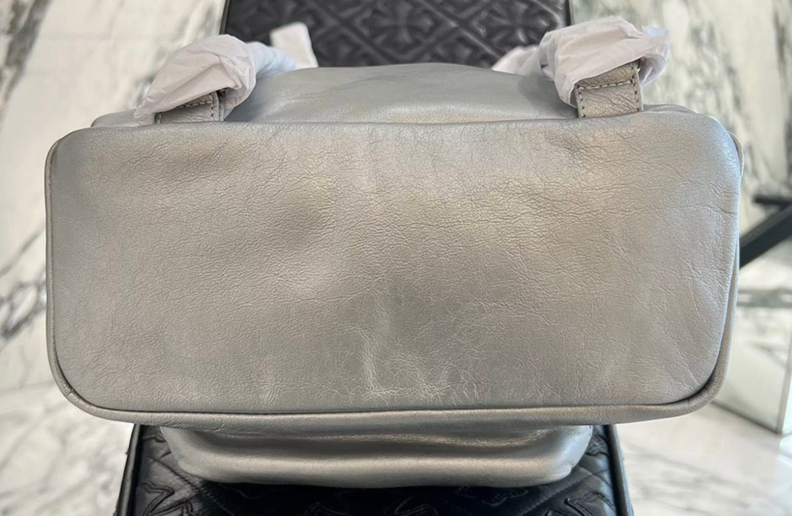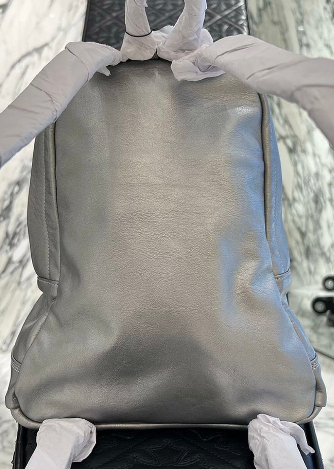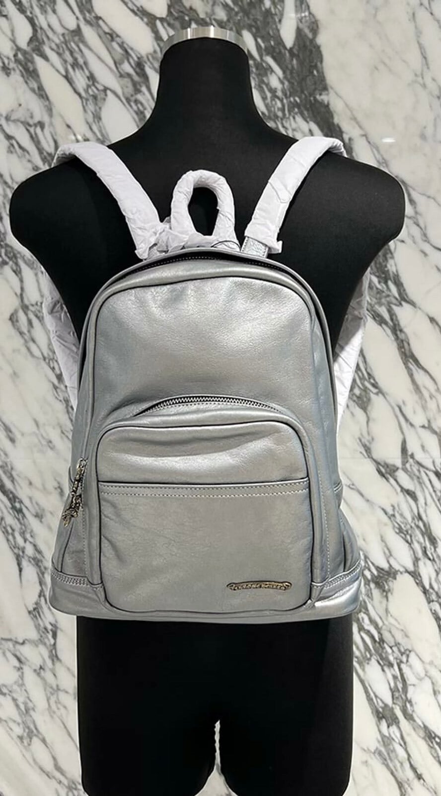 CHROME HEARTS クロムハーツ 7th grade メタリックシルバー レザーバックパック リュックサック レザーバッグ ダガージップ スクロールラベル カーフレザー シルバー925 メタリックシルバー