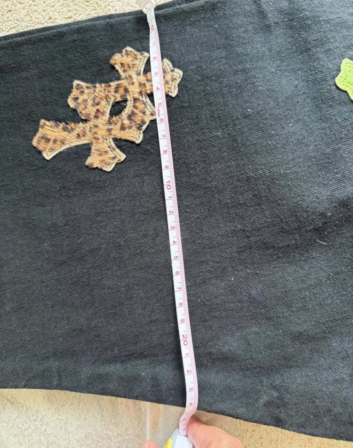 十字架の刺繍(緑とヒョウ柄)