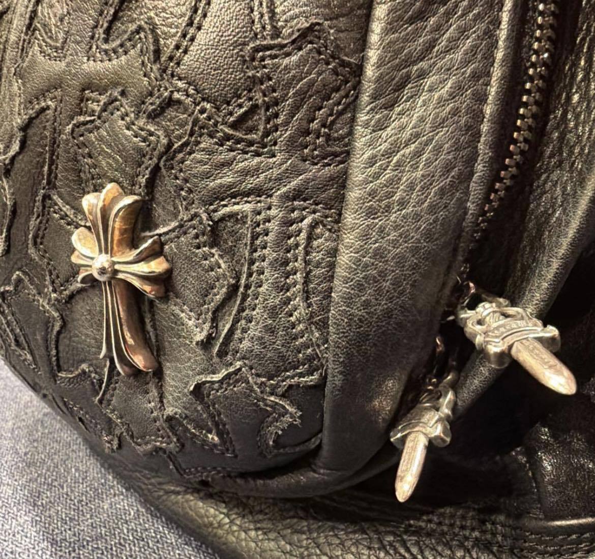 CHROME HEARTS クロムハーツ 7th Grade Cemetery クロスレザーバックパック ブラック リュック