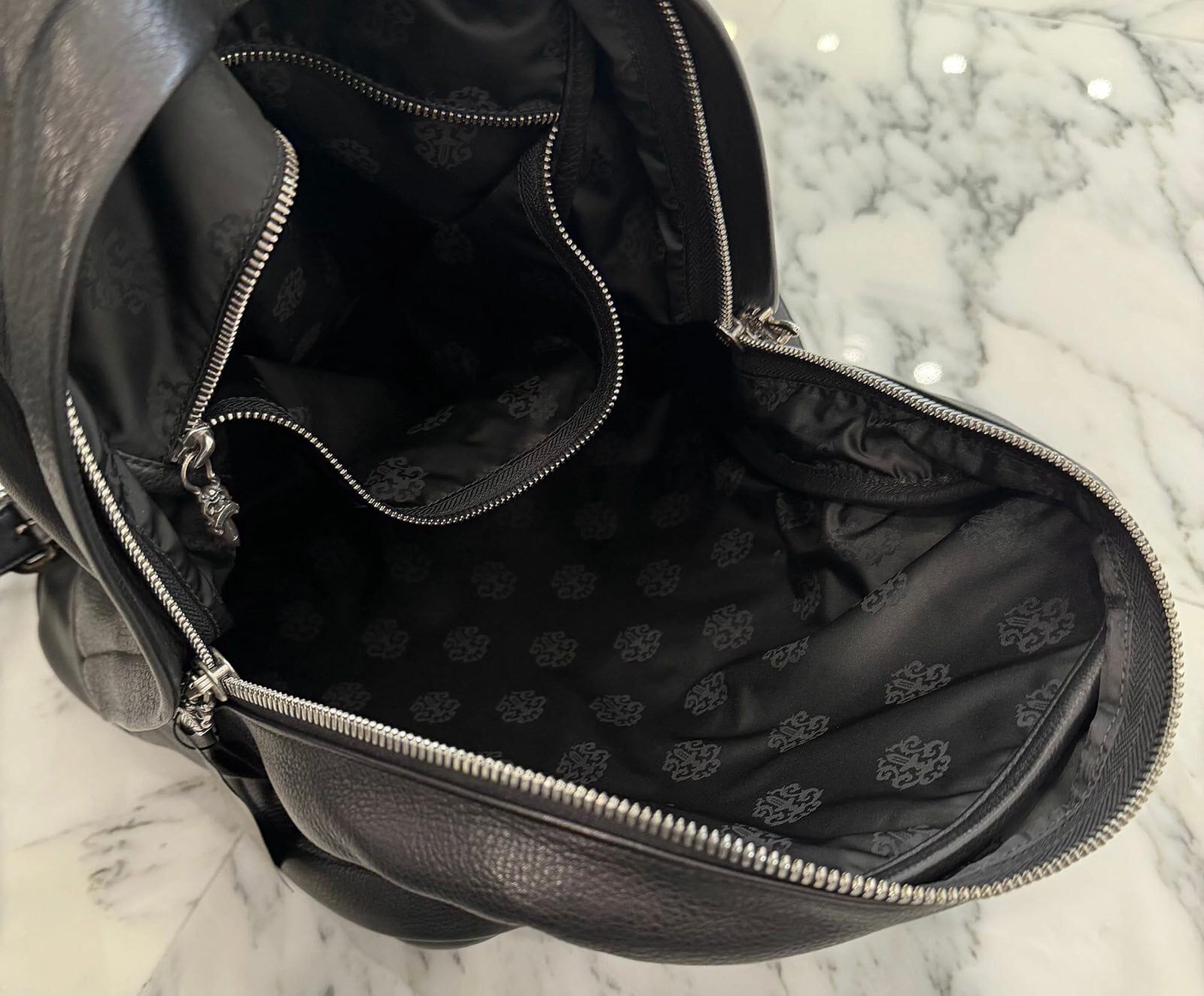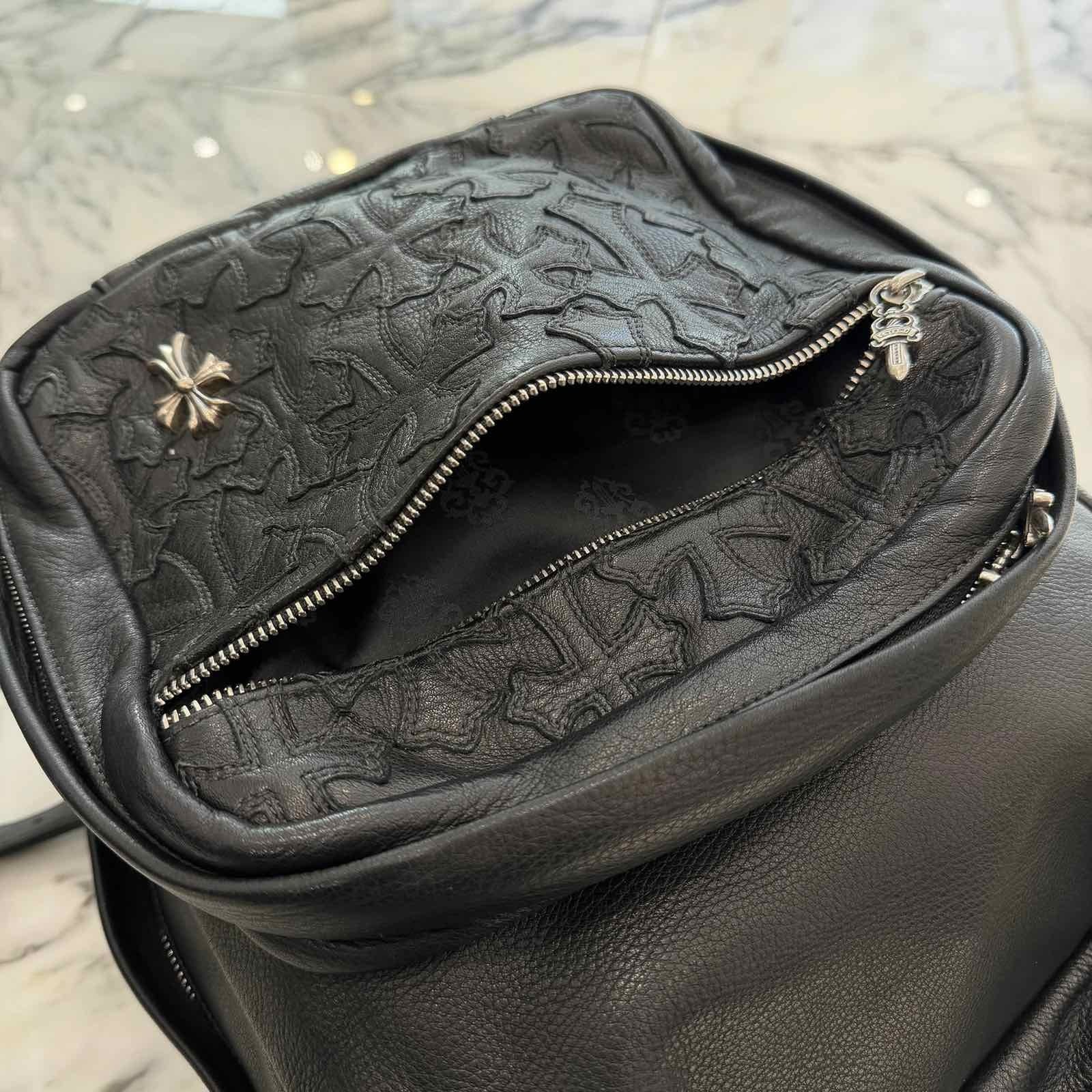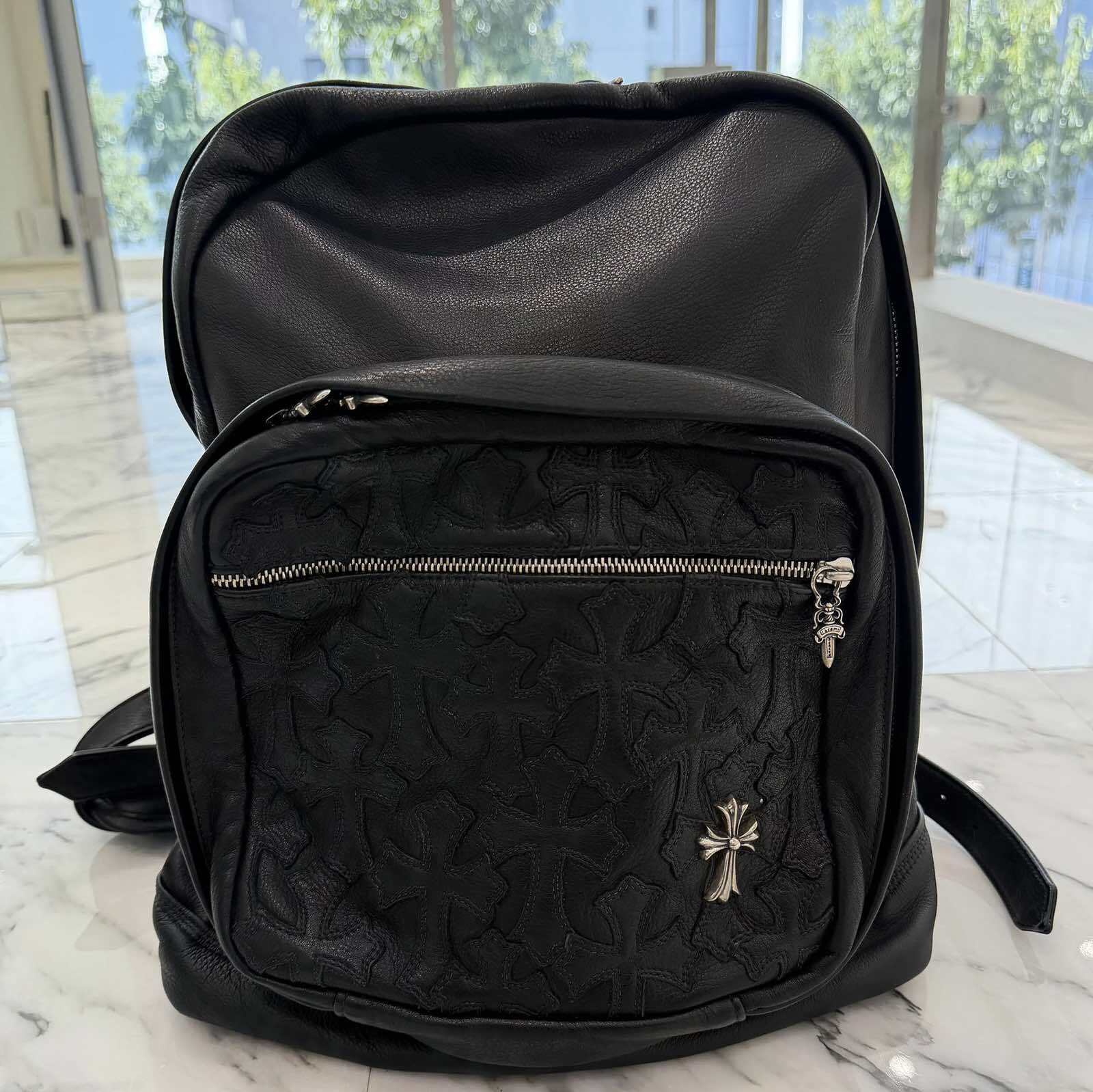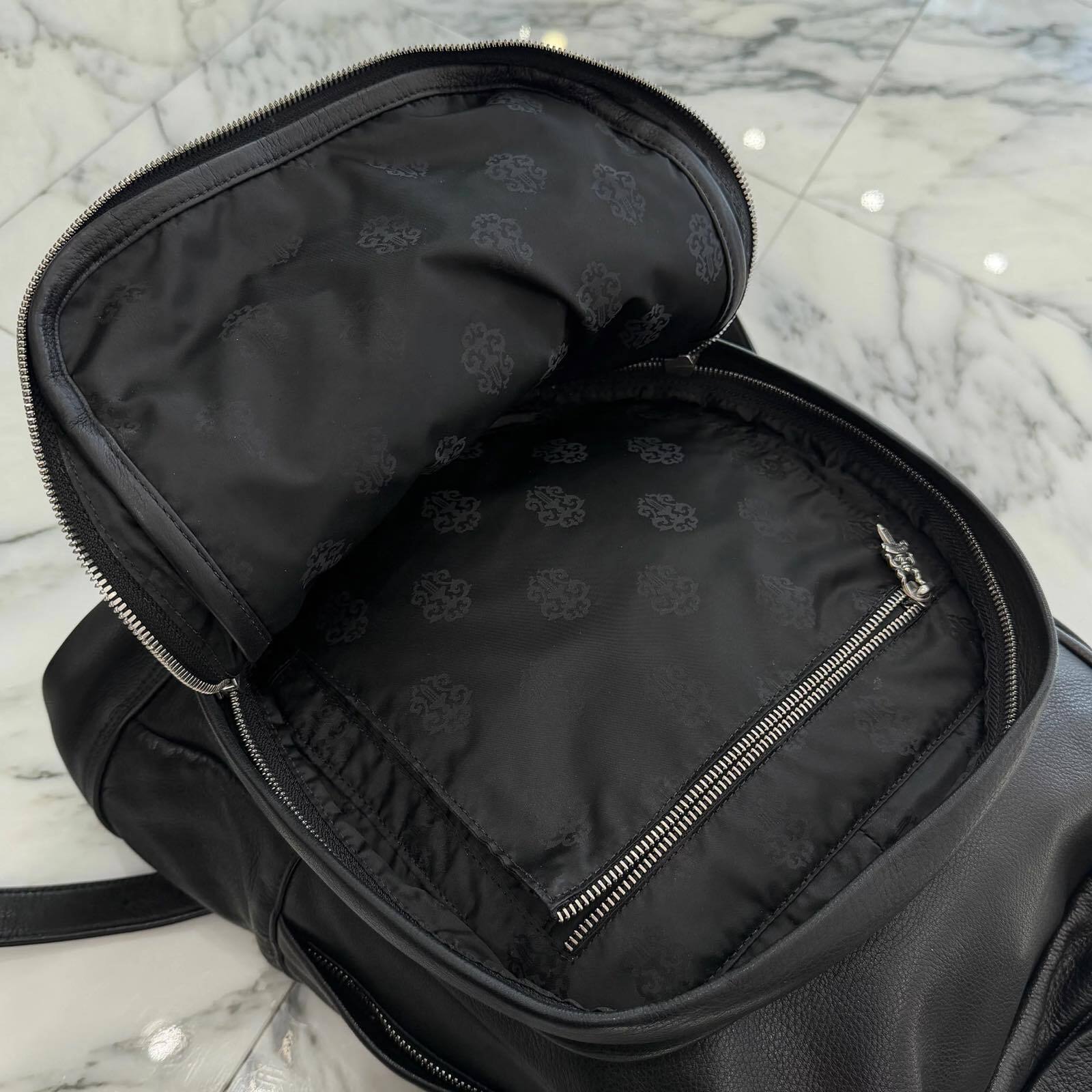 CHROME HEARTS クロムハーツ 7th Grade Cemetery セブンスグレード セメタリー レザークロスパッチ ラージ バックパック リュックサック ダガージップ シルバークロス カーフレザー シルバー925 ブラック