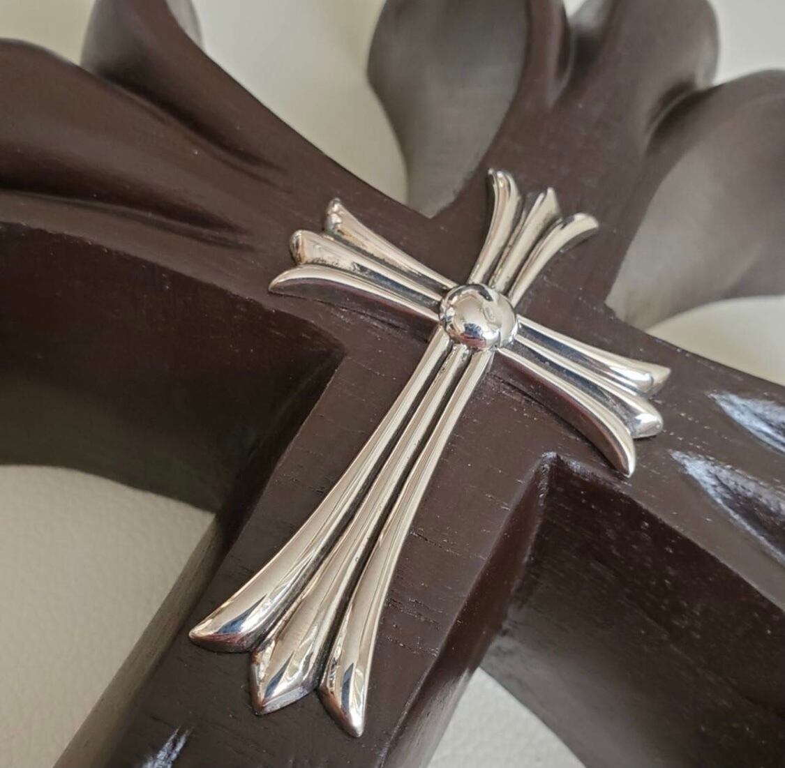 クロムハーツの壁掛けタイプの木製のクロスになります、シルバーのクロスと木製パーツの仕様です。