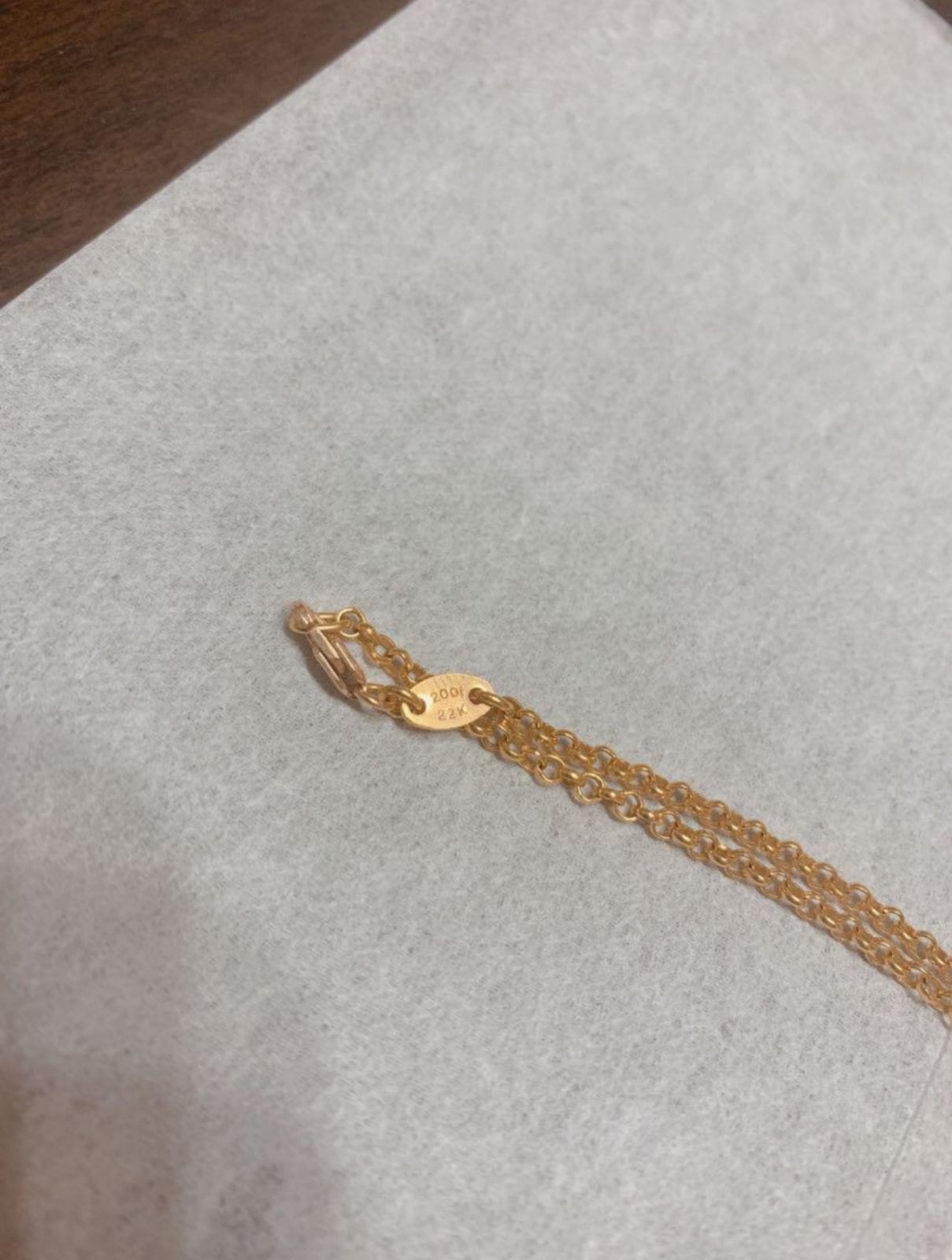 クロムハーツの22kは18kとは違い深みのあるゴールドで、雰囲気が違います。ダイヤはダブルダイヤで表と裏の両方に輝きのあるダイヤが付いています。ダイヤが全体ではなく、1つですので、嫌味もなく、お洒落に長く付けていただけます。