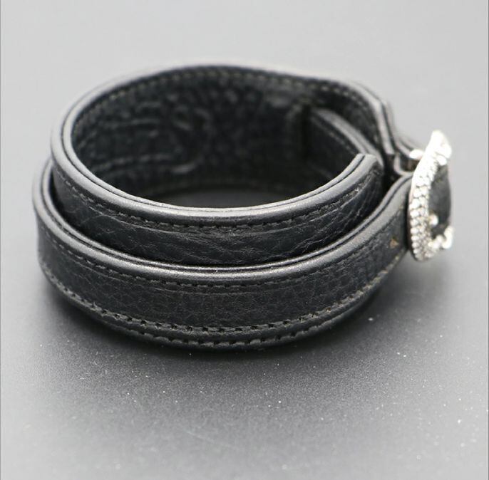 CHROME HEARTS クロムハーツ 【ダイヤモンド95個】ロックンロール レザーブレスレット
