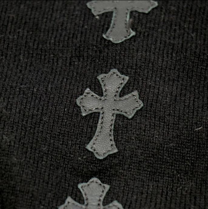CHROME HEARTS クロムハーツ カシミヤ ミニセメタリークロスパッチ クロスボタン カシミアニット ブラック クロスボールボタン グリーンチェック